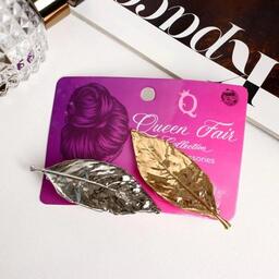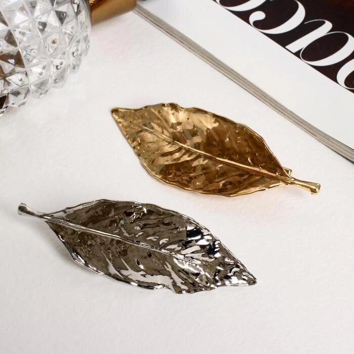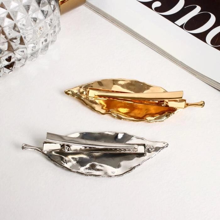 Зажим для волос "Лиен"набор 2 шт) листики, 7 см, серебристо-золотой