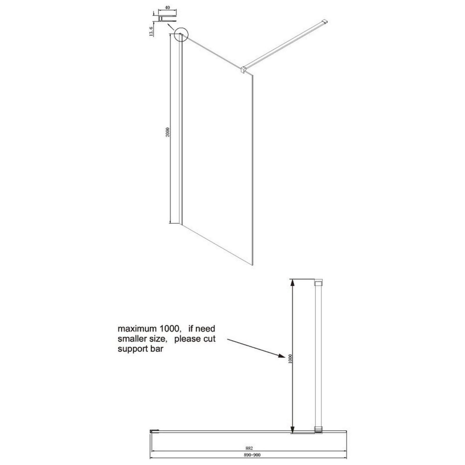 Душевое ограждение Ambassador Waik-in 15031101, 900x2000 мм, прозрачное