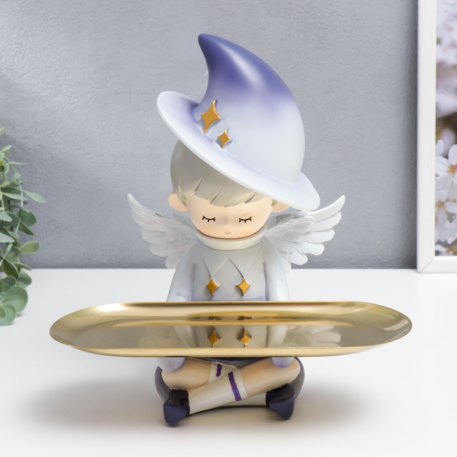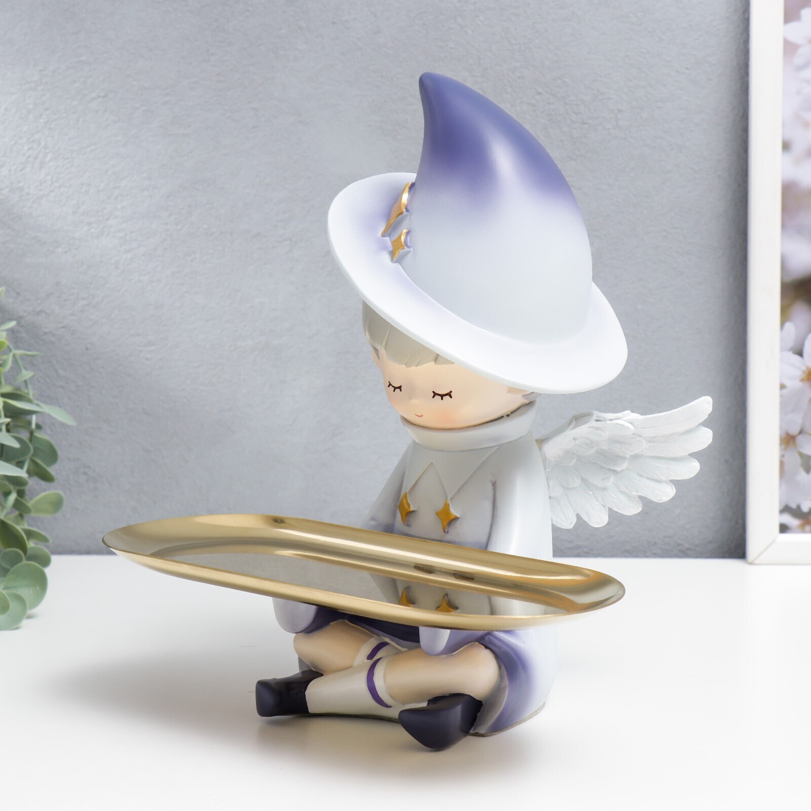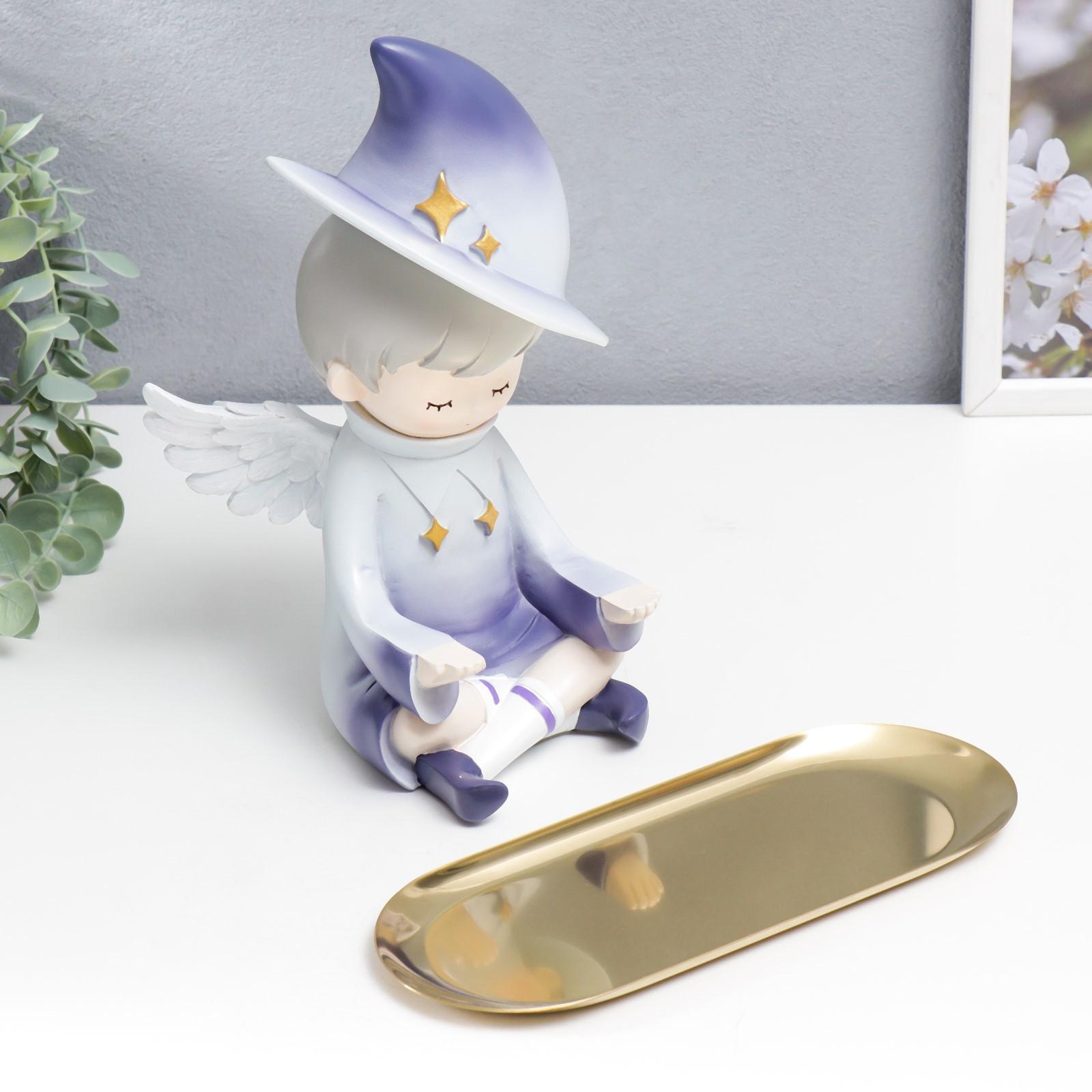 Сувенир полистоун подставка "Малыш-ангел в колпаке со звёздами" 24х17,8 см