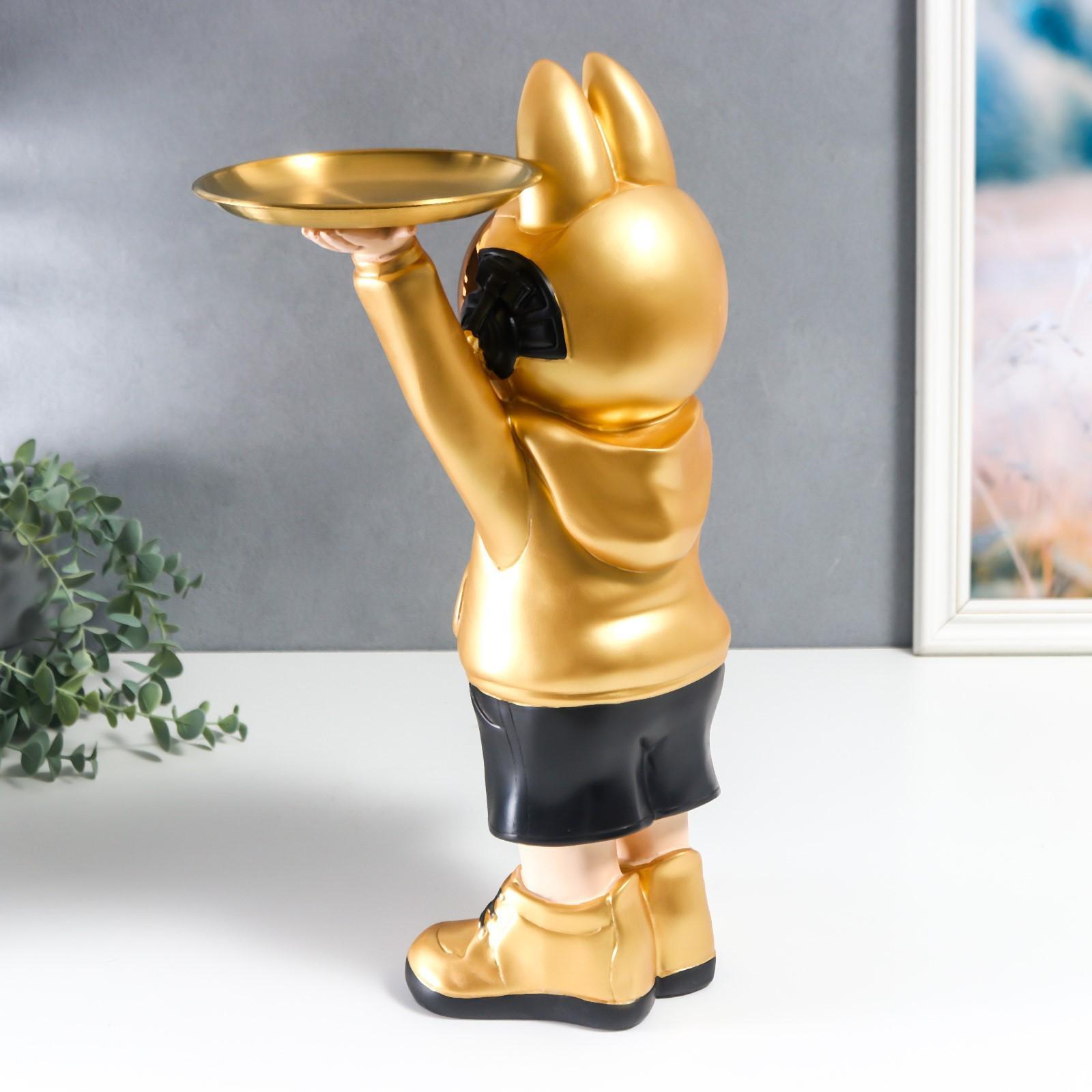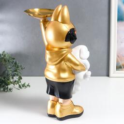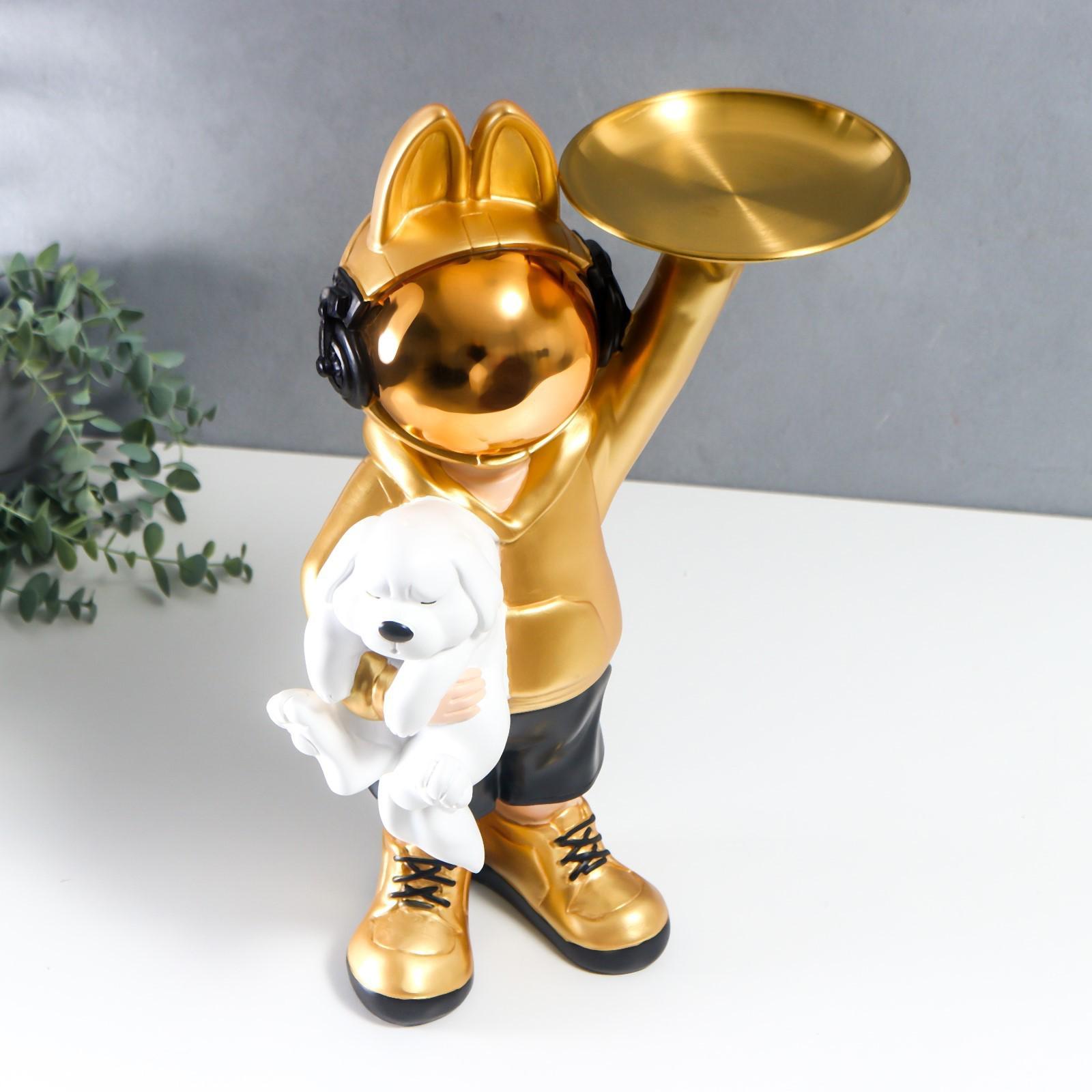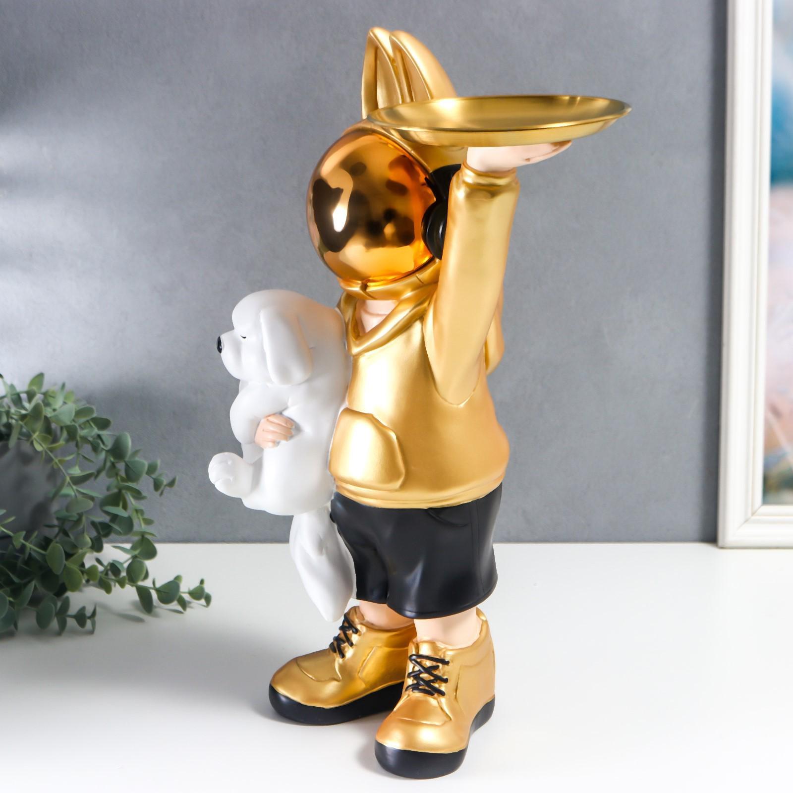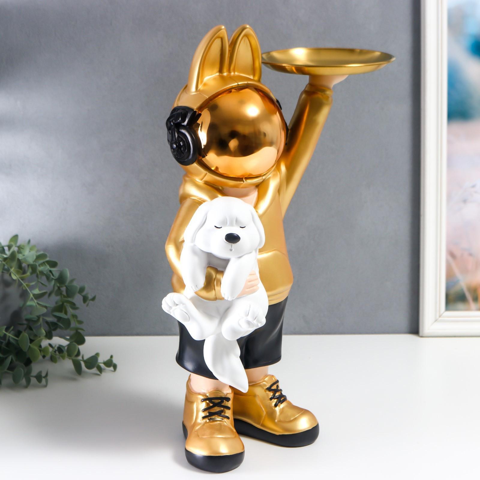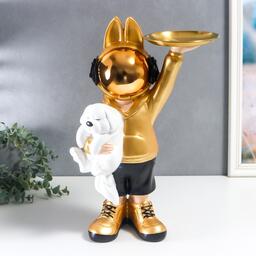 Сувенир полистоун подставка "Космонавт-кролик в золотом с пёсиком" 44х29 см