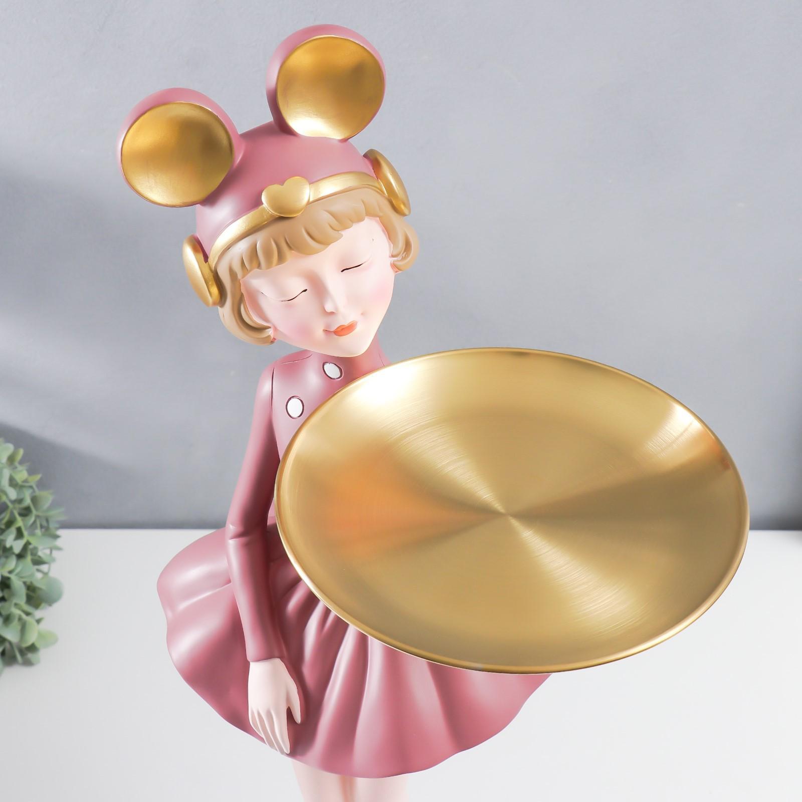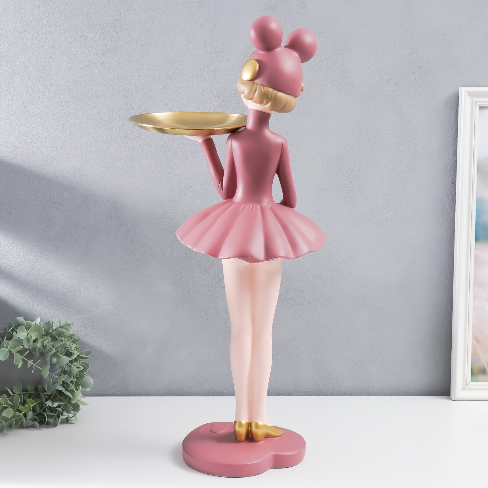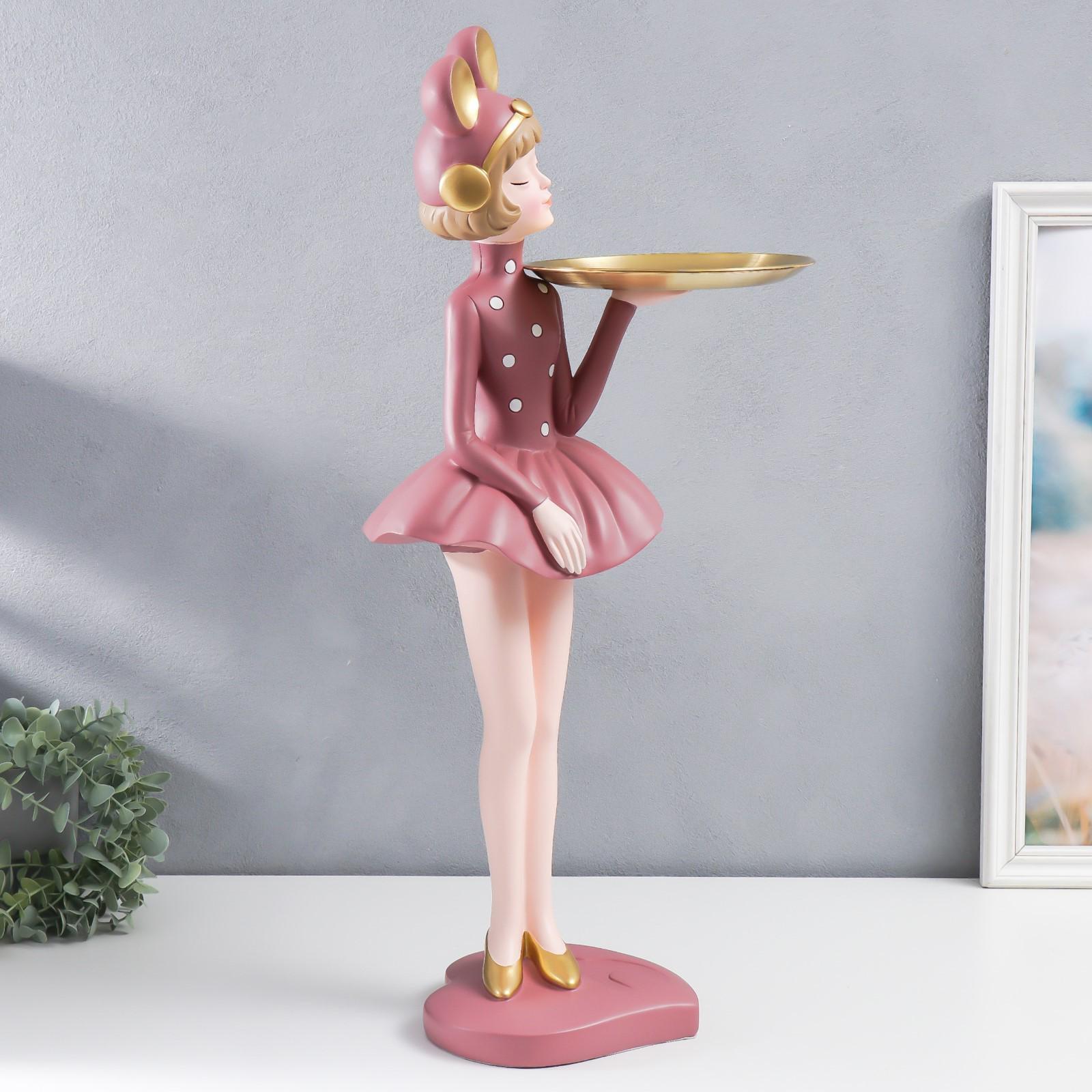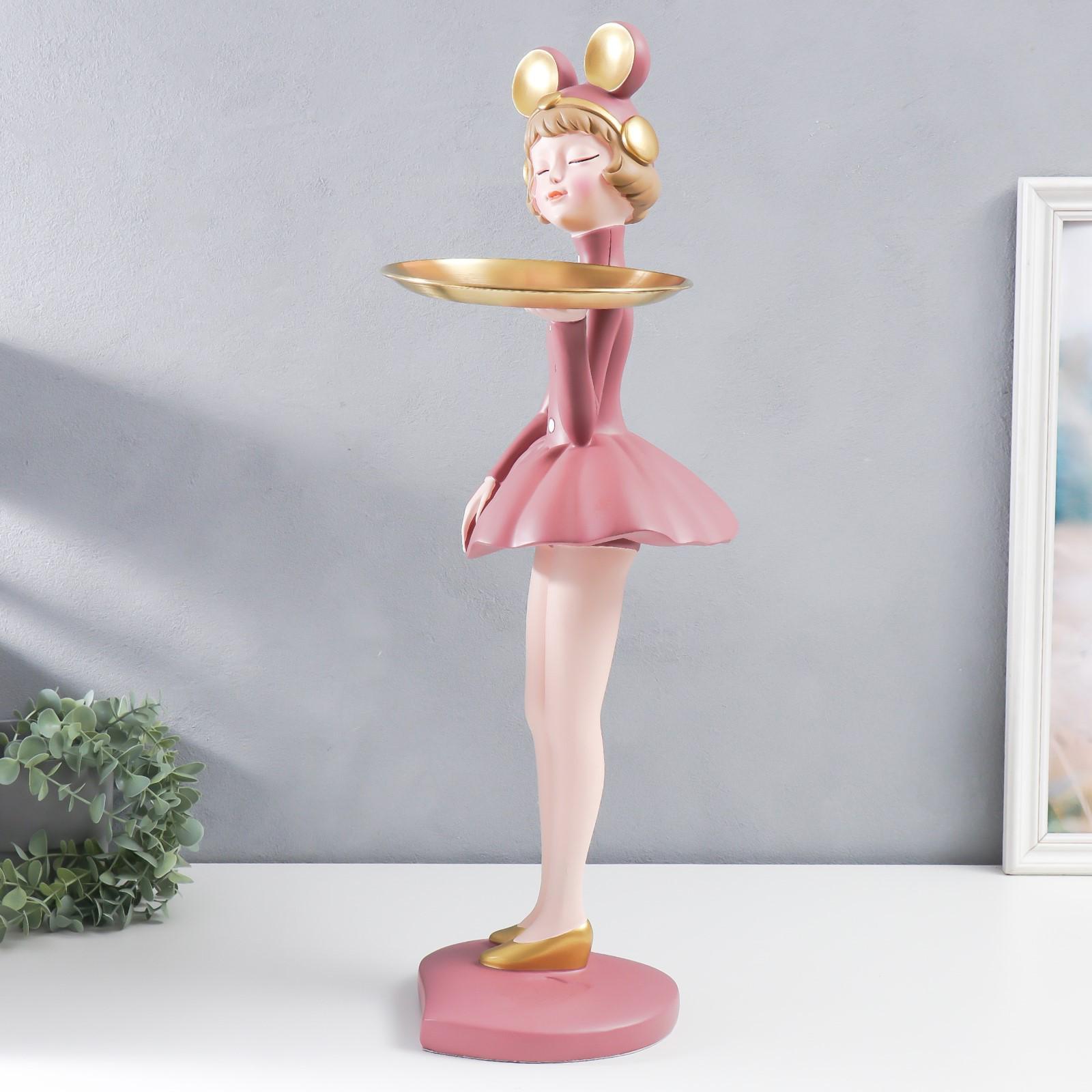 Сувенир полистоун подставка "Девушка ушки мишки" пыльно-розовый 69х30х25 см