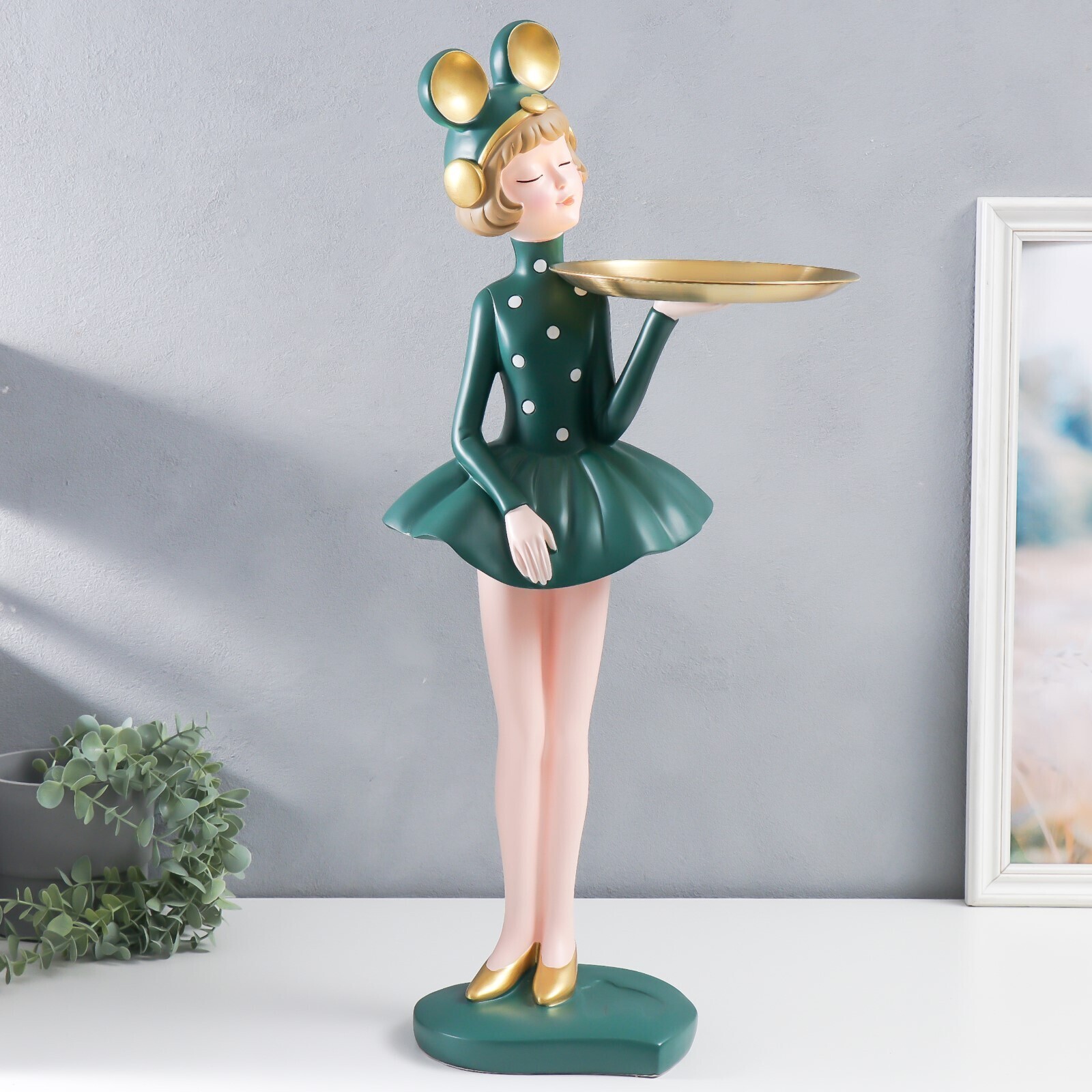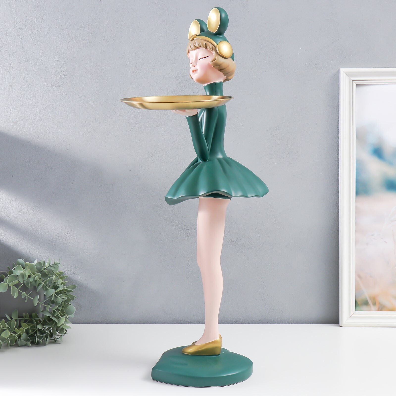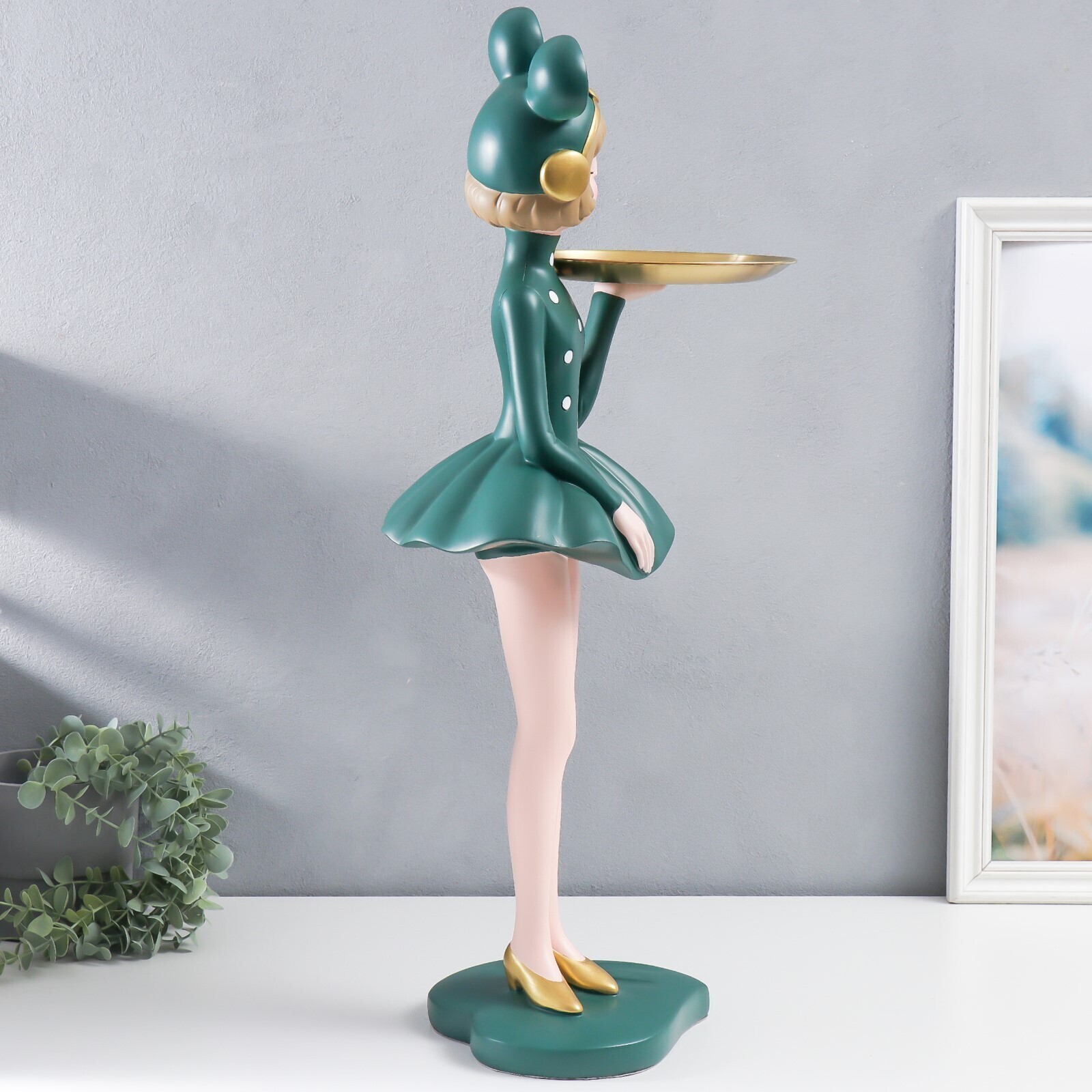 Сувенир полистоун подставка "Девушка ушки мишки" тёмно-зелёный 69х30х25 см