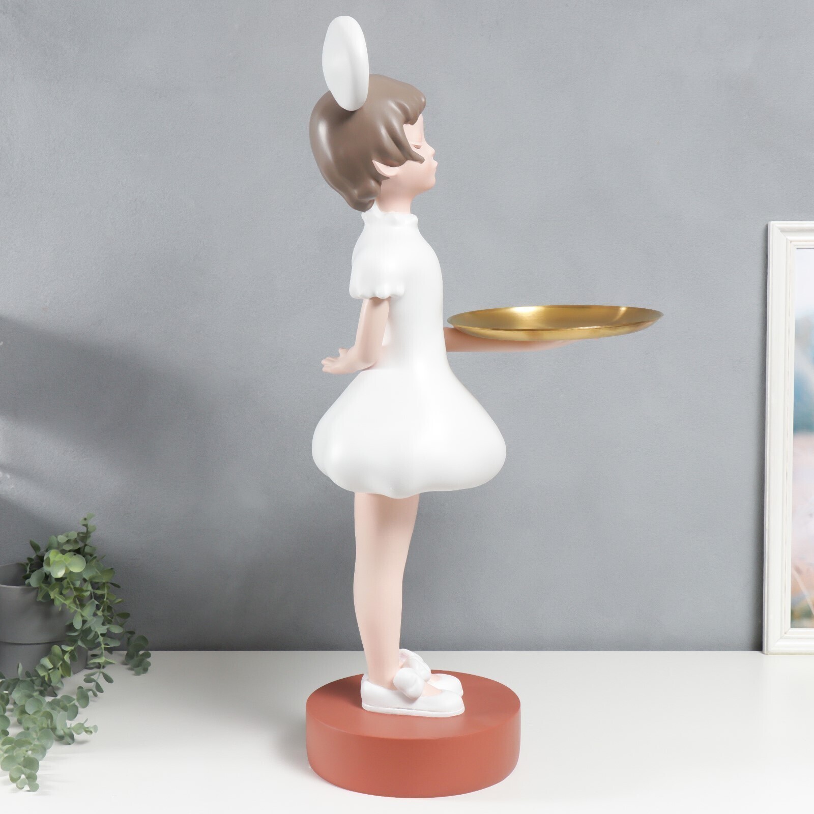 Сувенир полистоун подставка "Малышка с ушками, в белом платьице" d=26 см 81х40х40 см