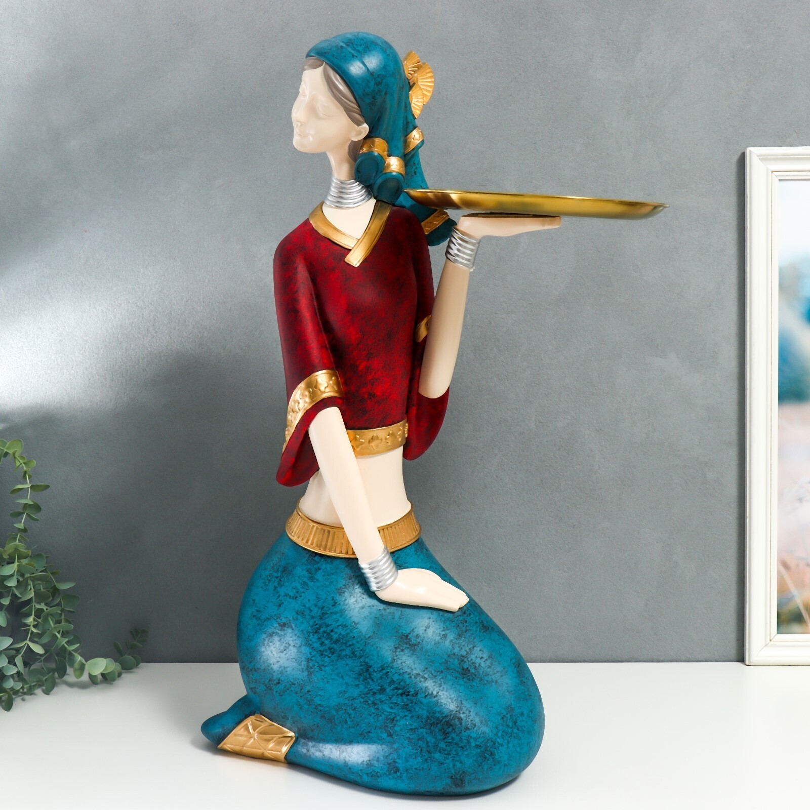 Сувенир полистоун подставка "Девушка в африканском наряде" d=23 см 68х40,5х26 см
