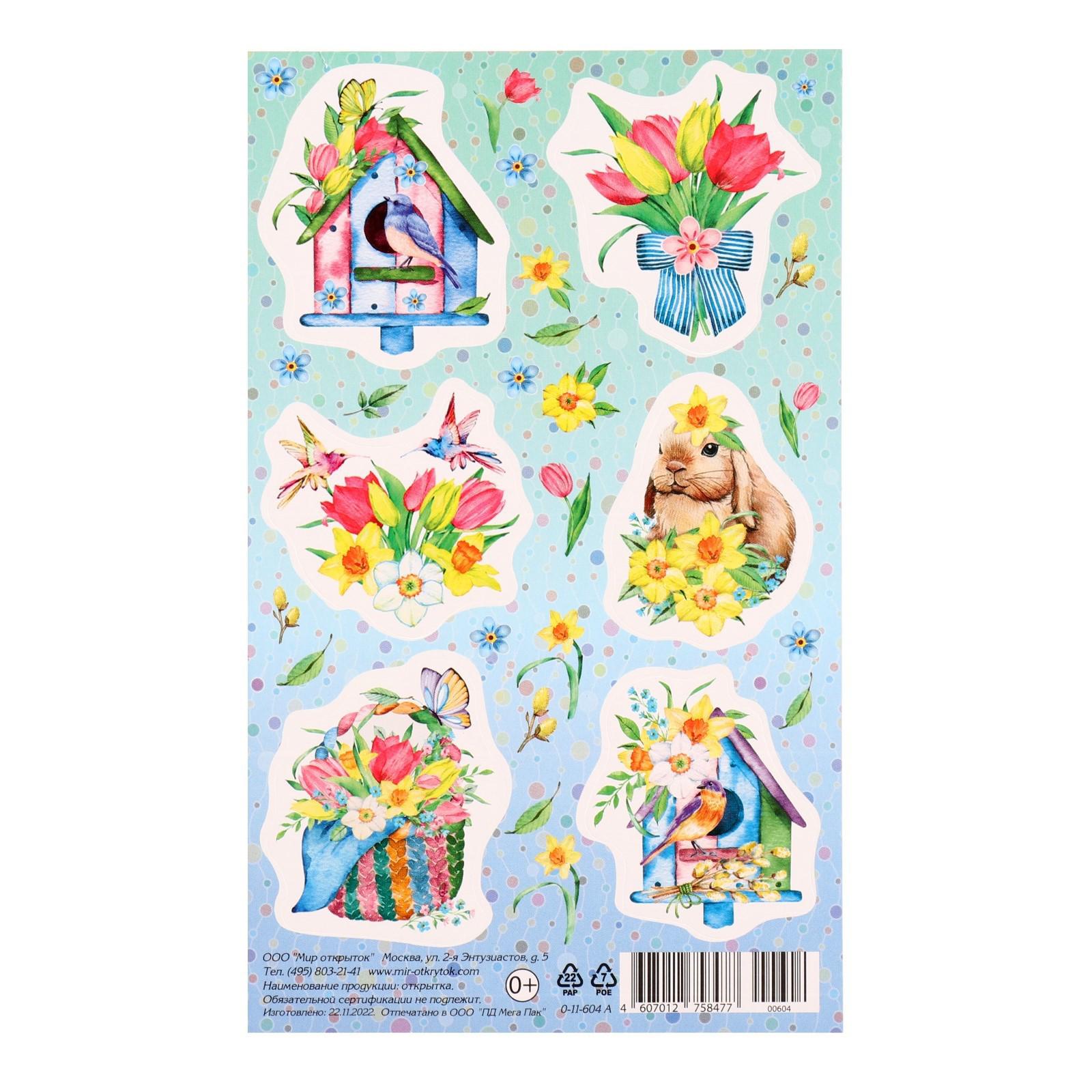 Наклейки "Весна" кролик, скворечник, 9,8х15,9 см