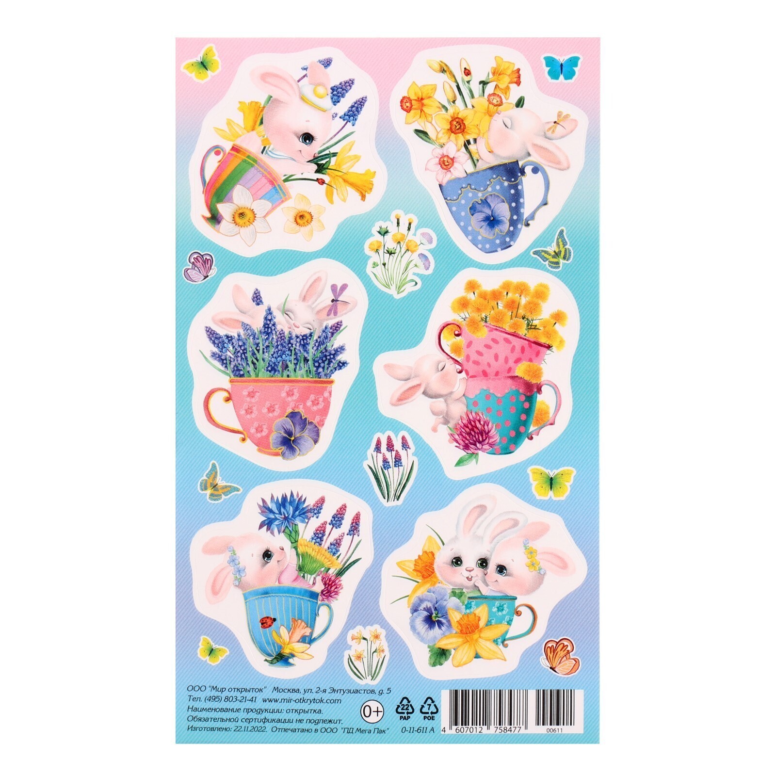 Наклейки "Весенний Зайка" чашки, цветы, пара, 9,8х15,9 см