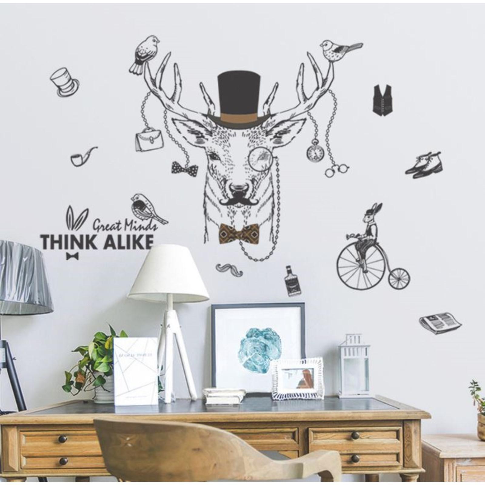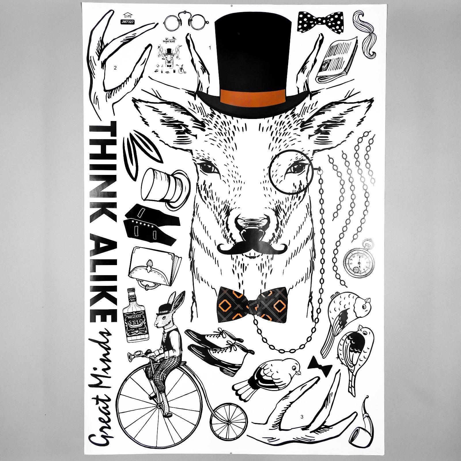 Наклейка пластик интерьерная чёрная "Олень-джентльмен" 60х90 см