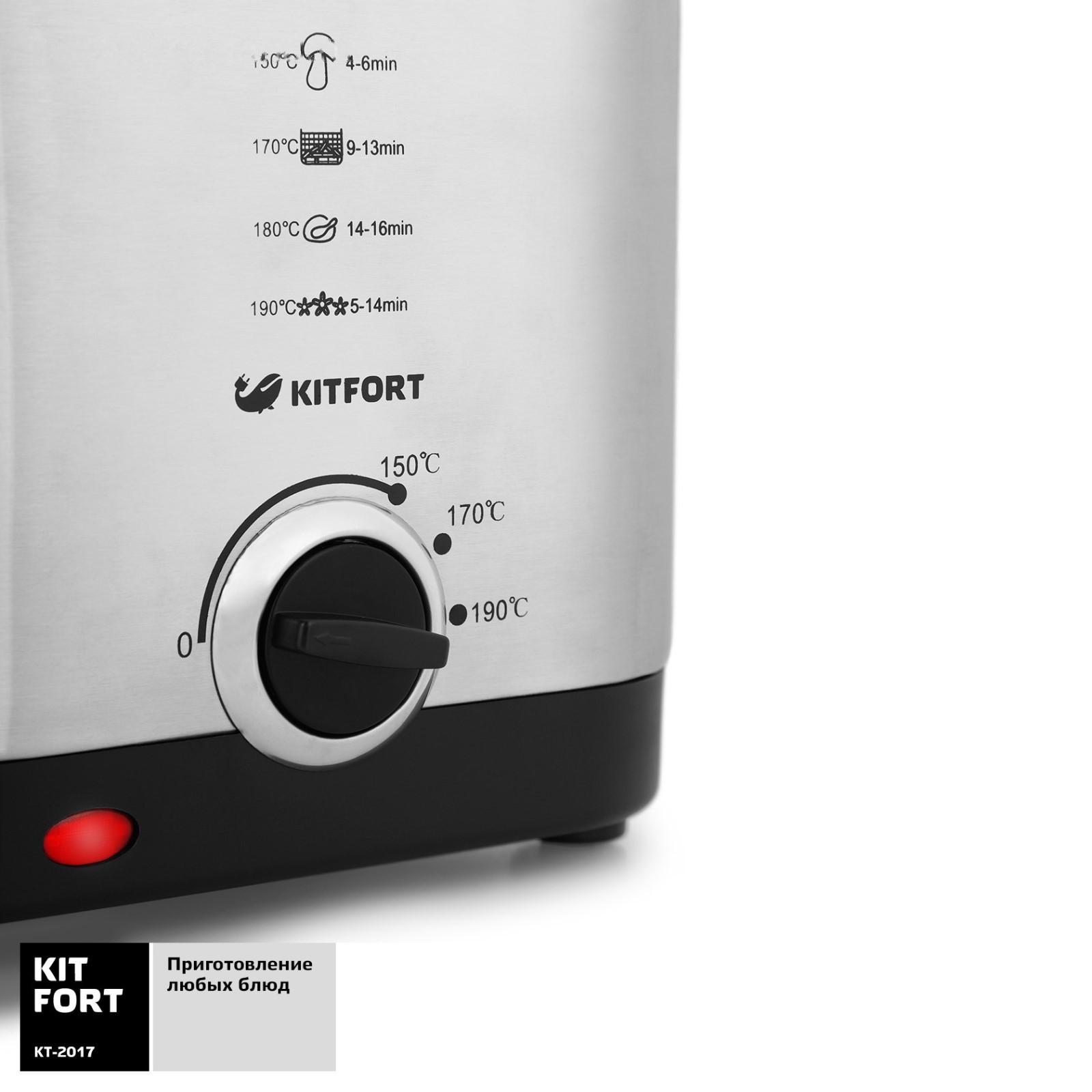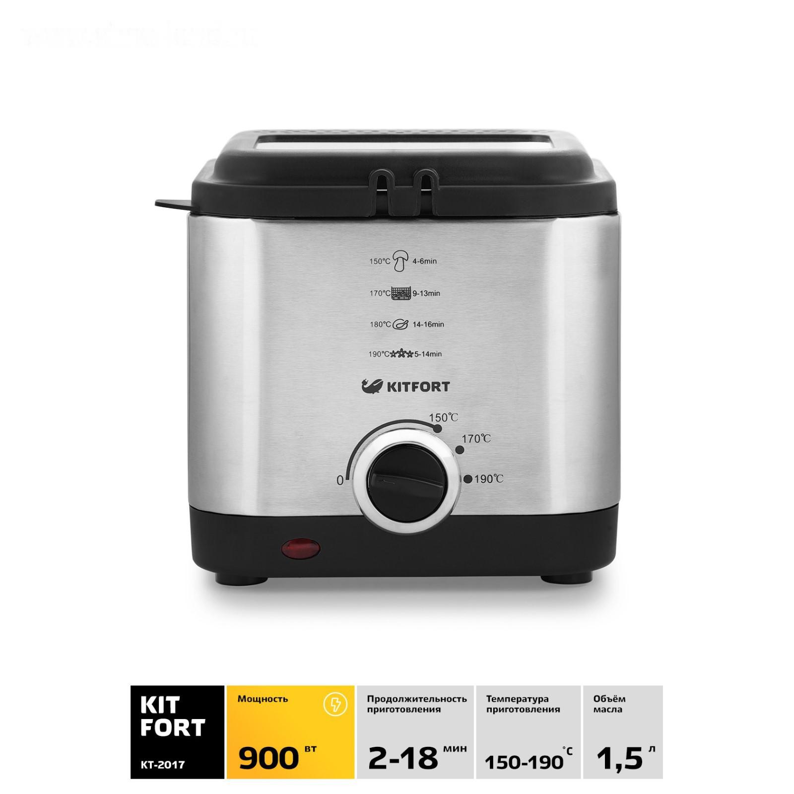 Фритюрница Kitfort КТ-2017, 900 Вт, 1.5 л, 3 режима, серебристая