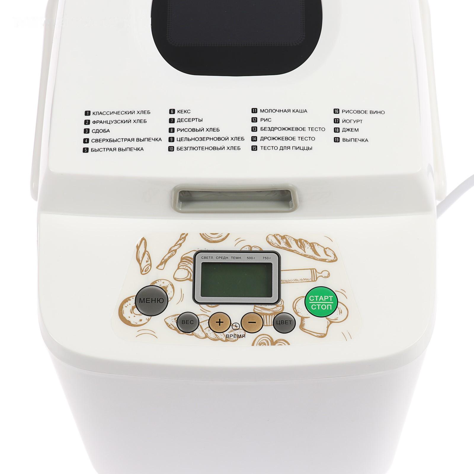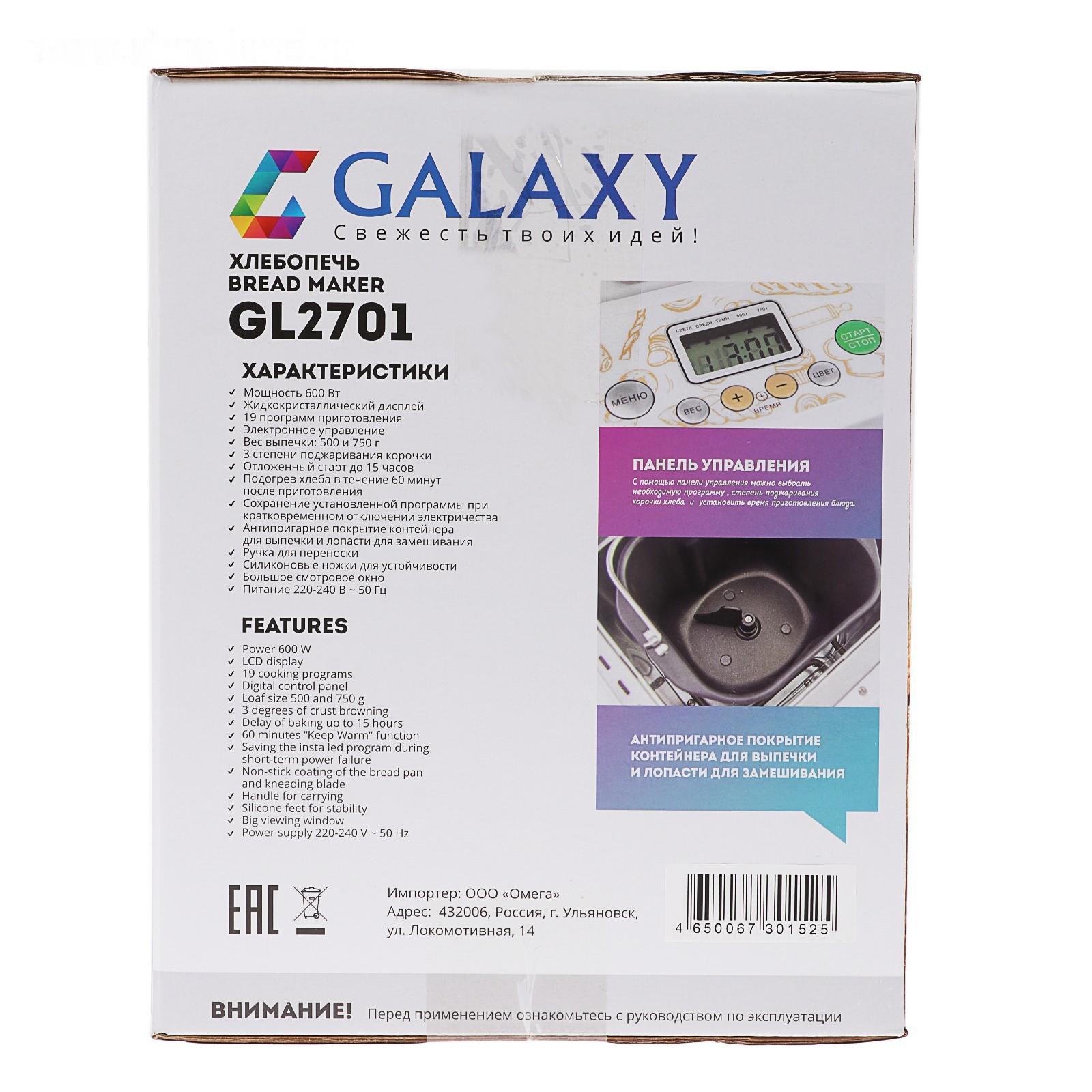 Хлебопечь Galaxy GL 2701, 600 Вт, 19 программ, до 0.75 кг, выбор цвета корочки, белая