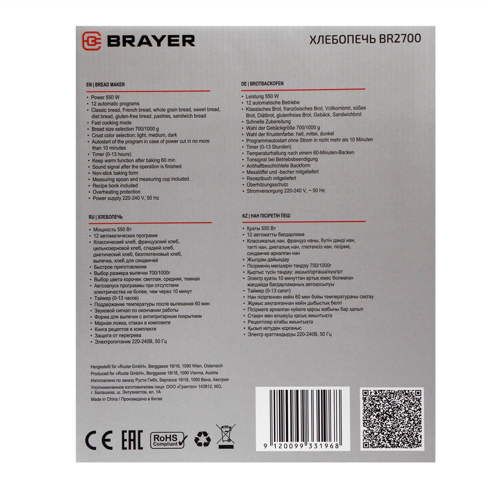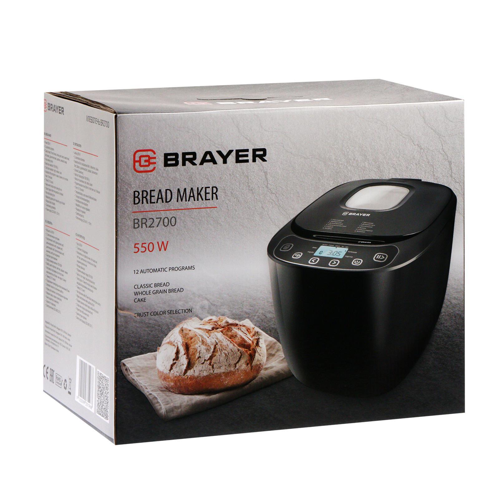 Хлебопечка BRAYER BR2700, 550 Вт, 12 программ, выбор цвета корочки, черная