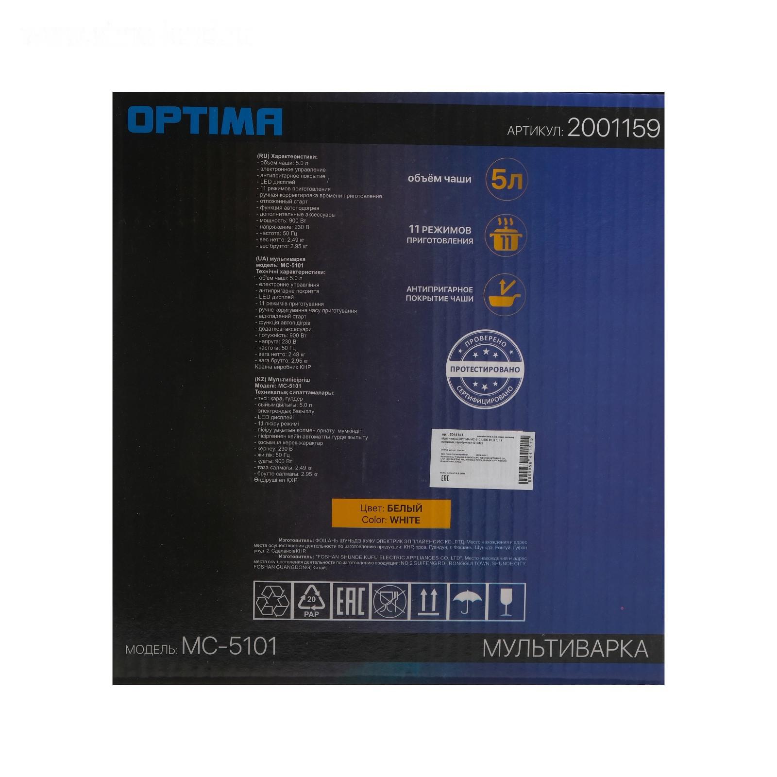 Мультиварка OPTIMA MC-5101, 900 Вт, 5 л, 11 программ, серебристая/белая