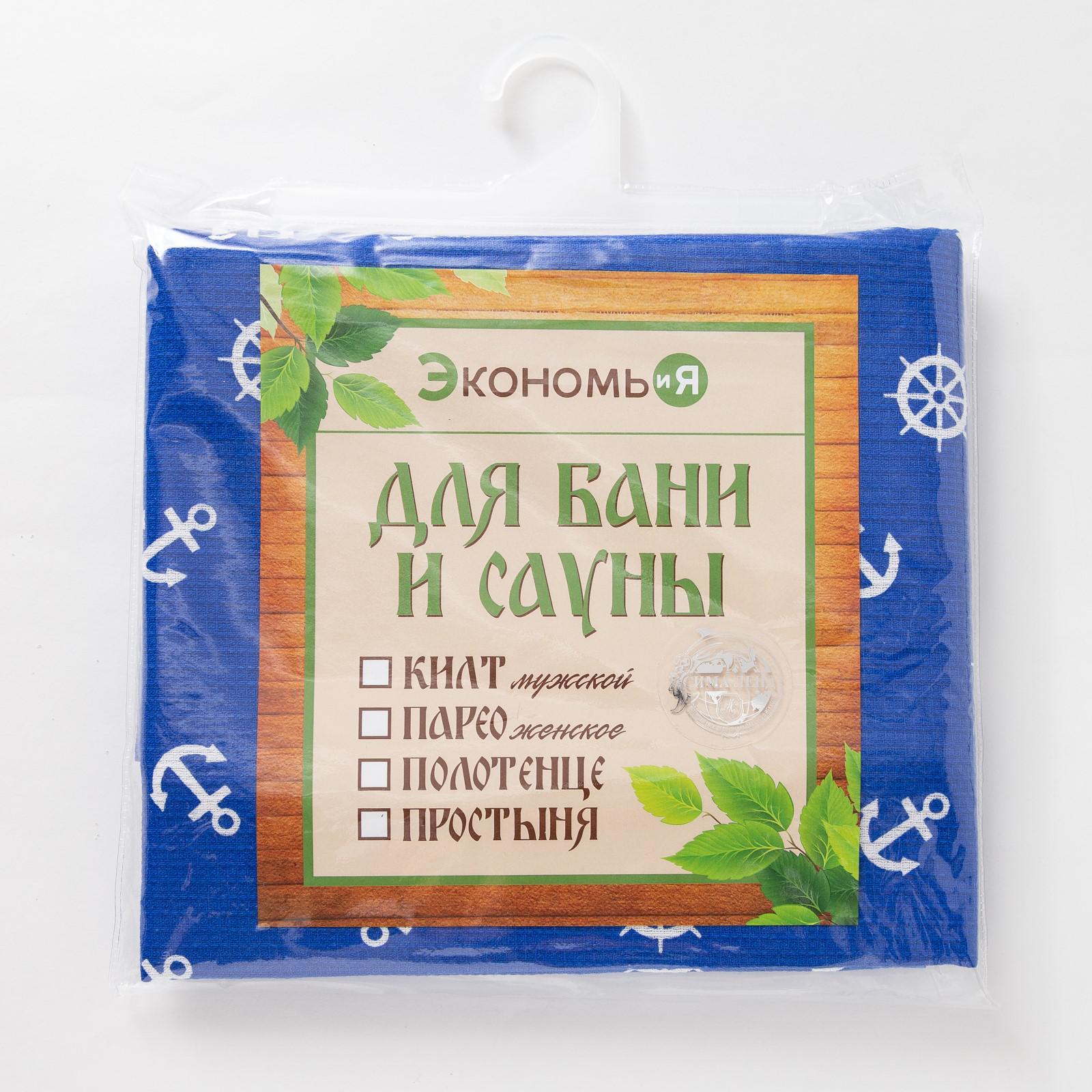 Полотенце вафельное банное Экономь и Я «Якоря» 80х150 см, цв.синий, 150 гр/м2, 100% хл