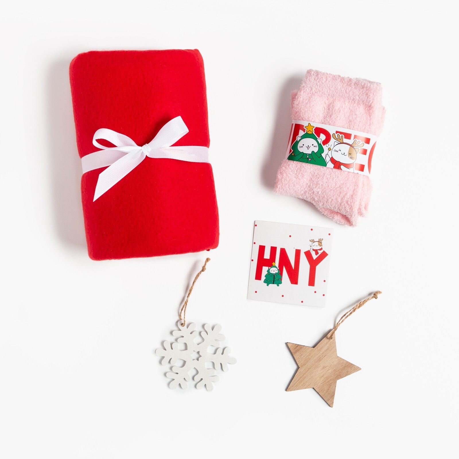 • Составляющие набора Игрушка, Носки, Открытка, Плед