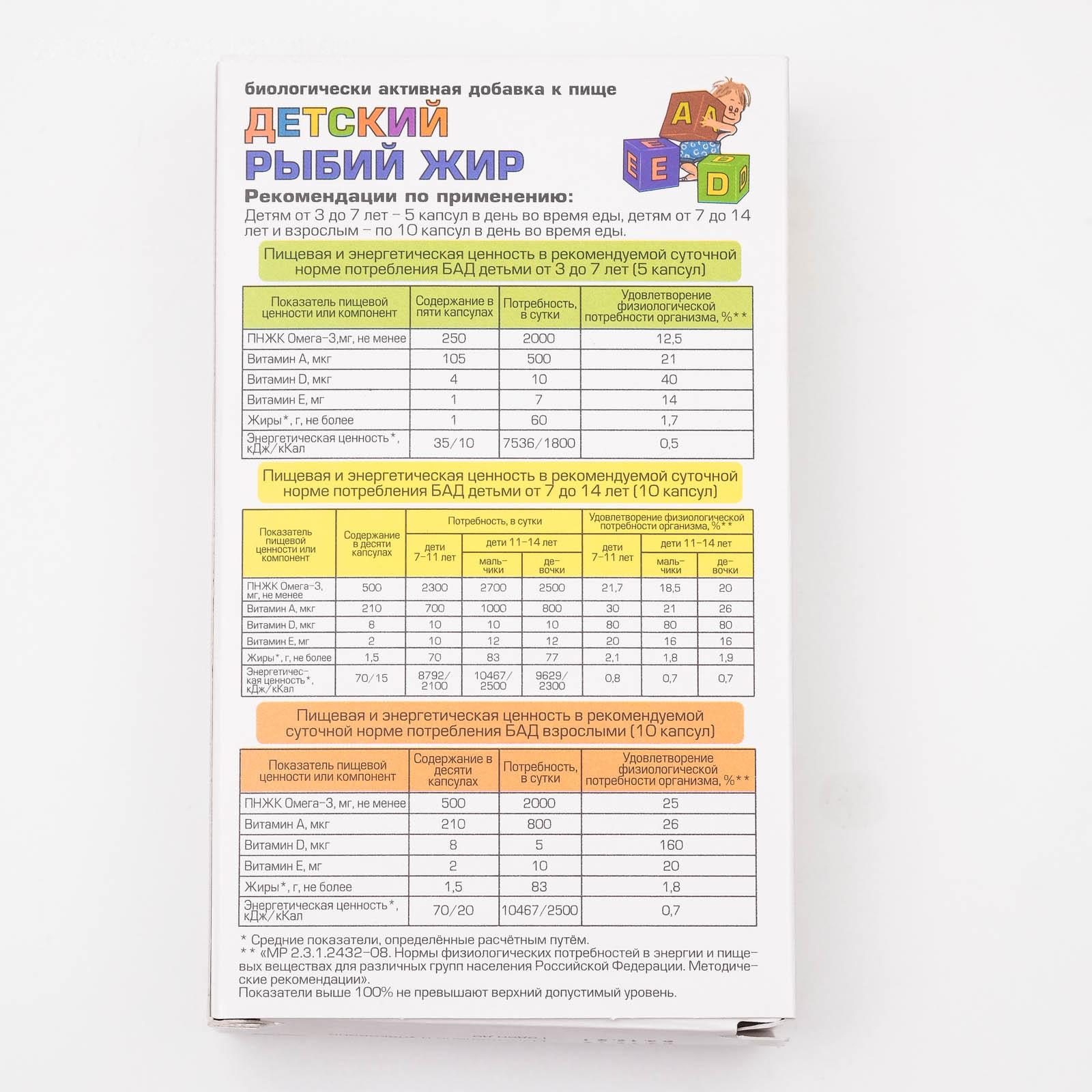 Рыбий жир детский 100 капсул по 166,7 мг.
