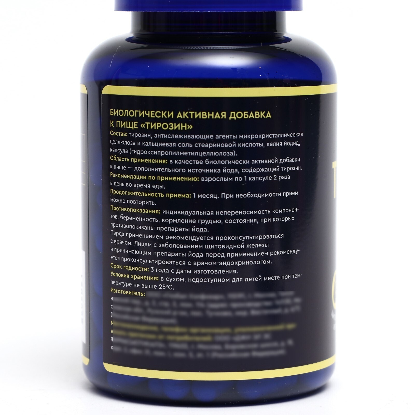 Состав: тирозин, Калия йодид; Вспомогательные вещества: антислеживающий агент микрокристаллическая целлюлоза; гидроксипропилметилцеллюлоза.