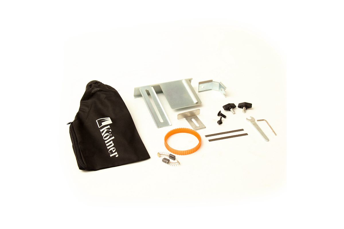 Комплектация: строгальные ножи, приводной ремень, параллельный упор с креплением, рожковый ключ, шестигранный ключ, мешок для сбора опилок, угольные щетки (комплект), приспособление для выборки четверти