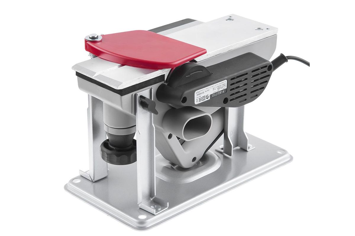 Аппарат для строгания древесины (в том числе, стационарного — с подставкой) с опорной платформой из литого алюминия. Мощность — 710 Ватт; вращение ножа — 14500 оборотов/минуту; глубина обработки — до 2 миллиметров, ширина — 82 миллиметра. Другие преимущества: можно подключить к пылесосу; есть блокиратор случайного включения; использует твердосплавные ножи (запасной набор).