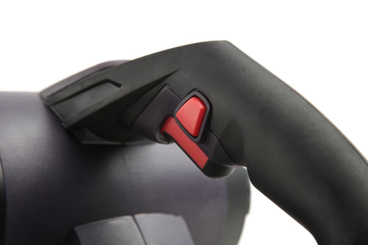 Дополнительно рубанок имеет защиту от случайного включения — пусковой курок нельзя нажать, не отключив кнопку блокировки.