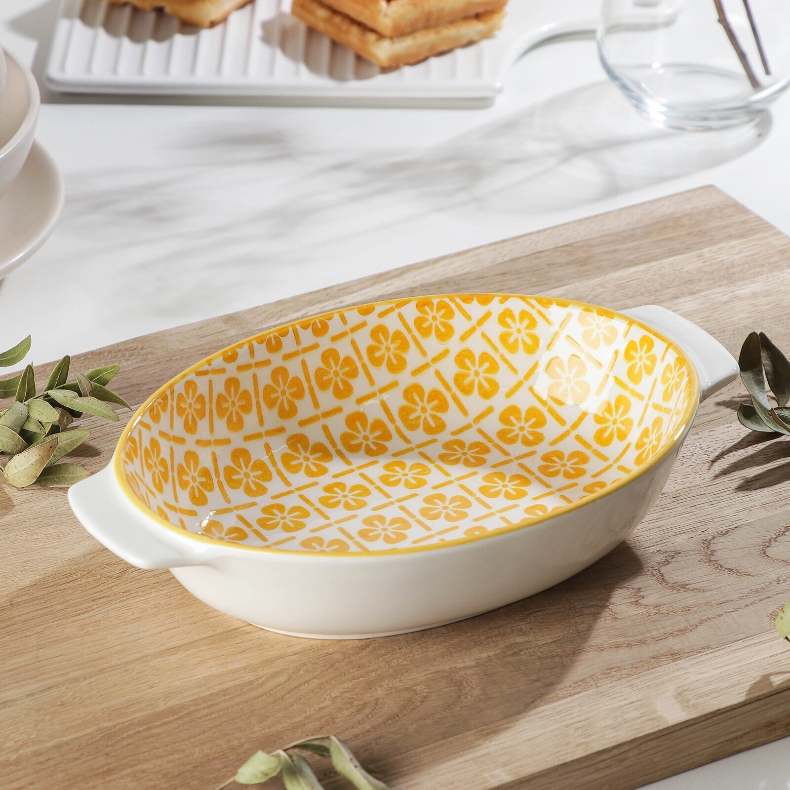 Форма для запекания из жаропрочной керамики хорошо выдерживает высокие температуры. Еда равномерно пропекается и сохраняет её насыщенный аромат. Подходит для использования в духовом шкафу, а благодаря эстетичному внешнему виду, приготовленную еду можно сразу подать на стол! Блюдо можно использовать как декоративное блюдо для подачи горячего, закусок, десертов, сыра, фруктов и других продуктов. Готовую еду можно хранить в блюде. Разрешено использование в микроволновой печи, духовом шкафу, в посудомоечной машине на щадящем режиме.