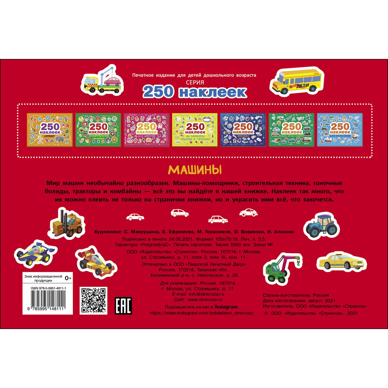 Книга СТРЕКОЗА 250 наклеек Машины 11337