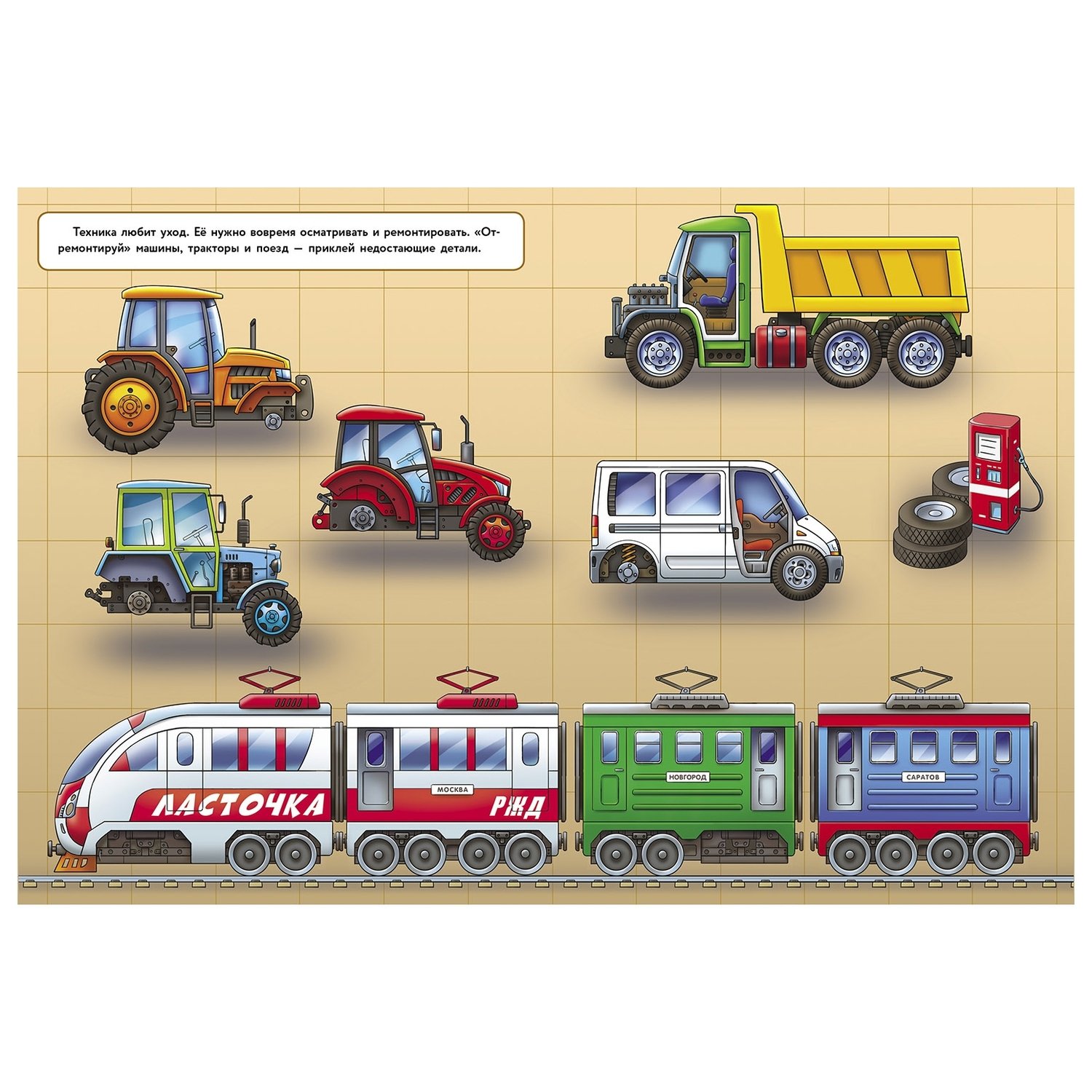 Книга СТРЕКОЗА Многоразовые наклейки Поезда Тракторы и Машины 11167
