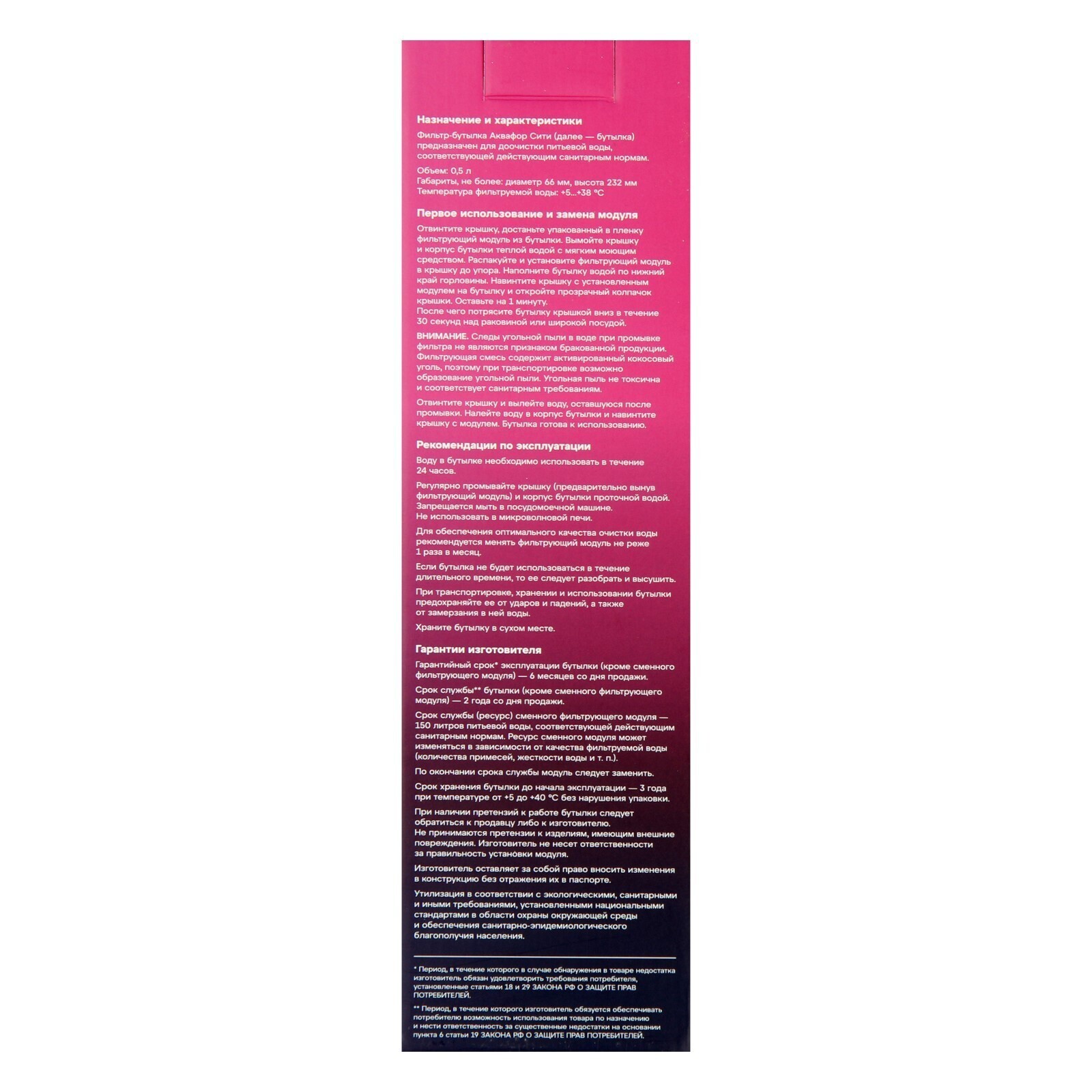 Матовое бархатистое покрытие бутылки приятно на ощупь, широкий ремешок дополнительно фиксирует бутылку во время использования, защитный колпачок не даст воде пролиться в сумке. Объем 0,5 л оптимален для утоления жажды на ходу, новую порцию воды для фильтрации можно добавить, как только это будет необходимо. Удобно для поездок и перелетов.