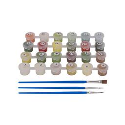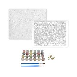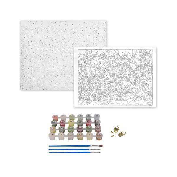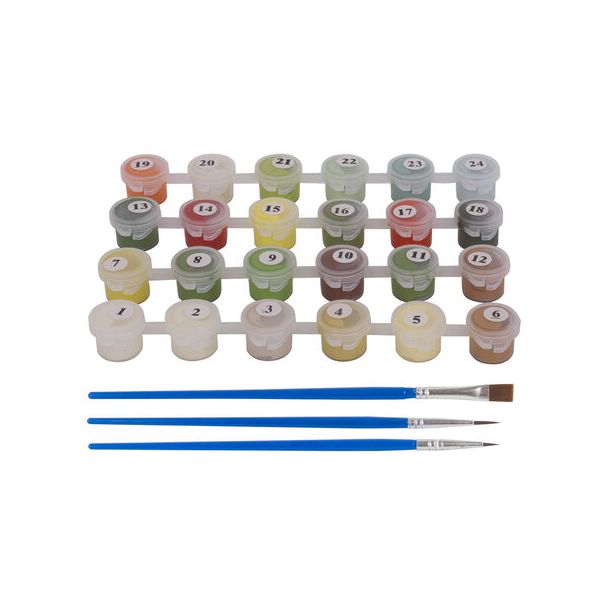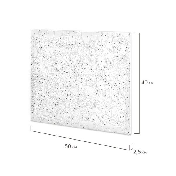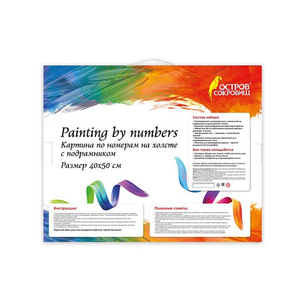 В набор входит: 1 хлопковый холст на подрамнике с контуром, 1 лист бумаги для тренировки, набор из 24 акриловых красок объемом 3 мл каждая, 3 синтетические кисти и комплект металлических креплений для подвешивания на стену. Краски укрывистые, быстро сохнут без потери цвета. Каждый цвет в наборе подходит под конкретный номер, благодаря чему нет необходимости смешивать краски. Однако, если Вы хотите добиться нового оттенка, наши краски с легкостью позволят это сделать благодаря отличной смешиваемости. 3 синтетические кисти разного размера идеально подойдут для закрашивания элементов различной сложности. Холст из 100% хлопка плотностью 290 г\м2 с высококачественной печатью и отличным натяжением. При работе с картиной дополнительно могут понадобиться: емкость с водой для мытья кисти и салфетка для удаления воды с кисти (В КОМПЛЕКТ НЕ ВХОДЯТ). Подходит для потребителей всех возрастов от 8 до 80 лет. Поставляется в картонной упаковке с ручкой.