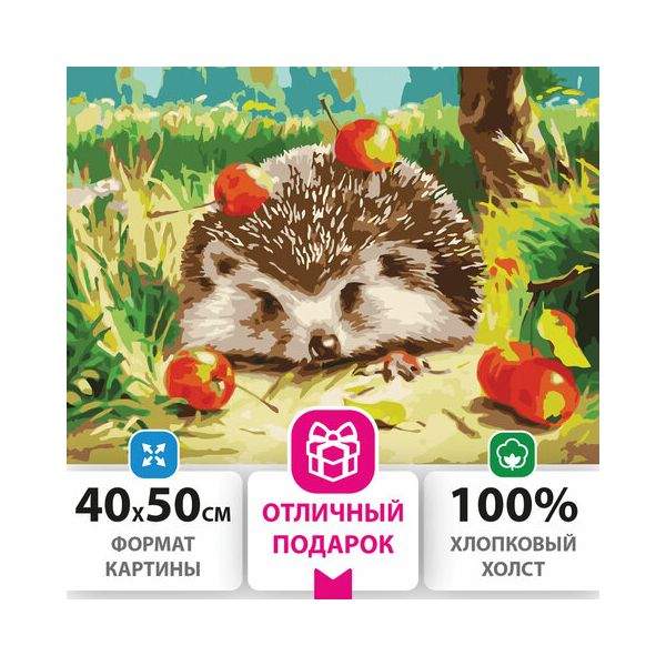 Описание товара Картина по номерам 40х50 см, ОСТРОВ СОКРОВИЩ "Ежик", на подрамнике, акриловые краски, 3 кисти, 662490