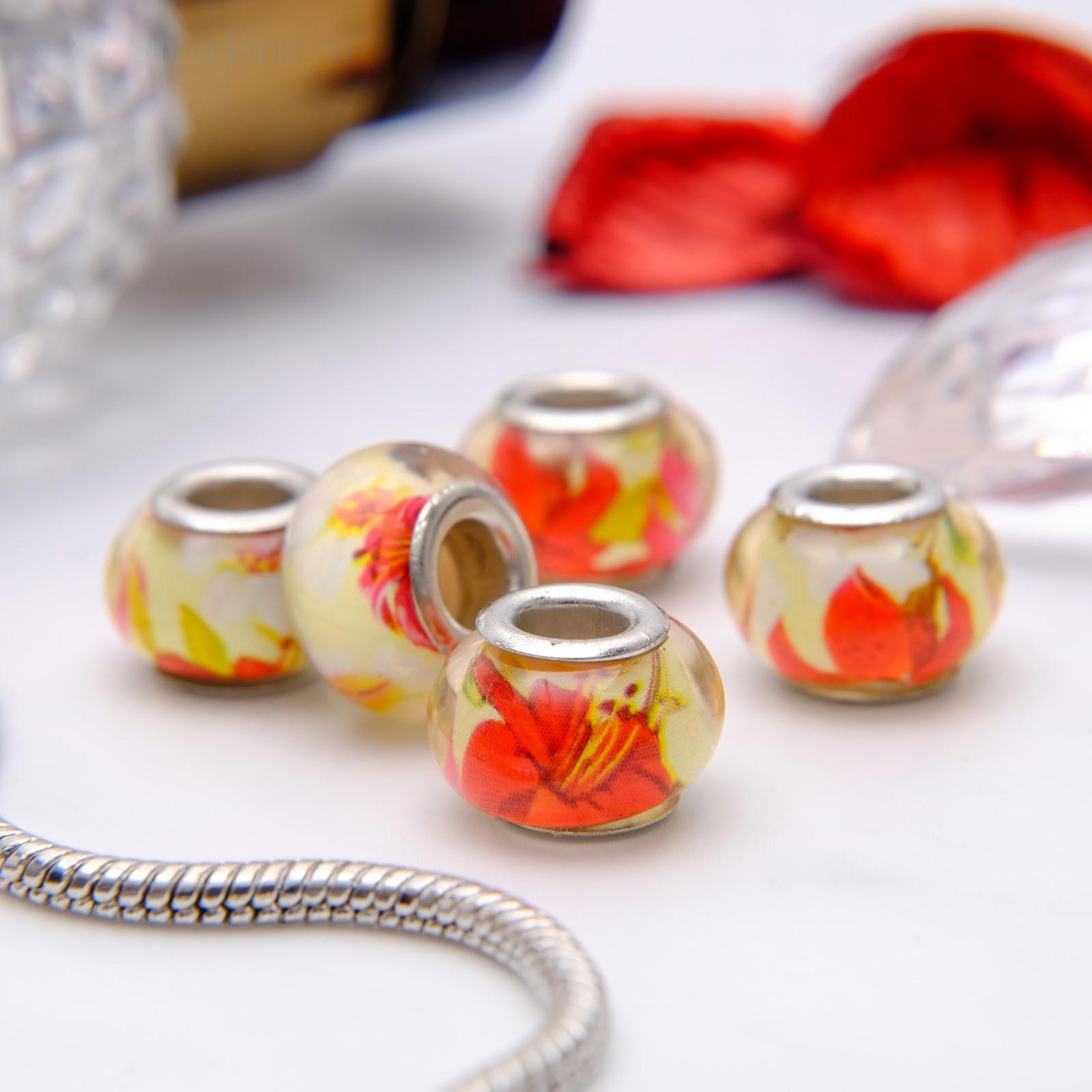 Бусина "Цветы" лилии, цвет красно-желтый в серебре