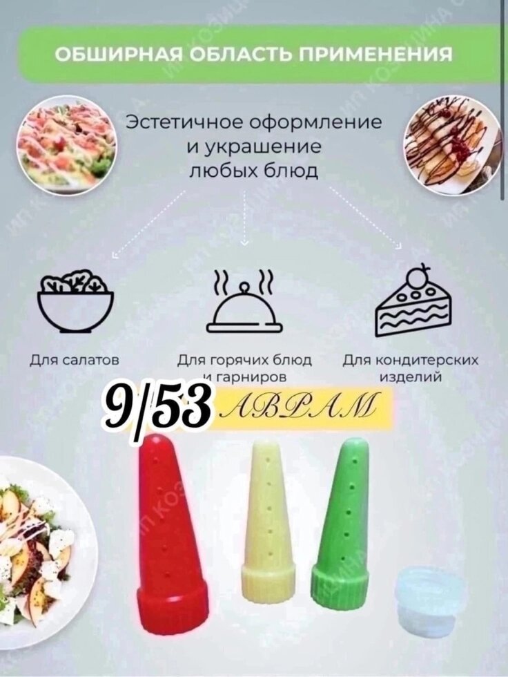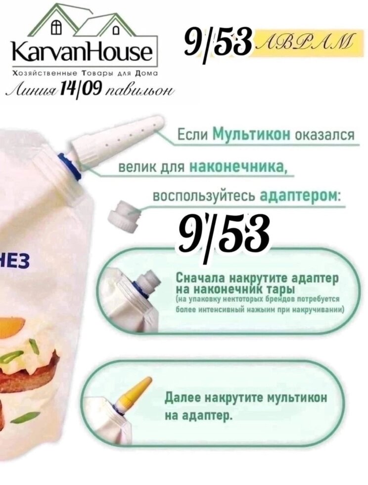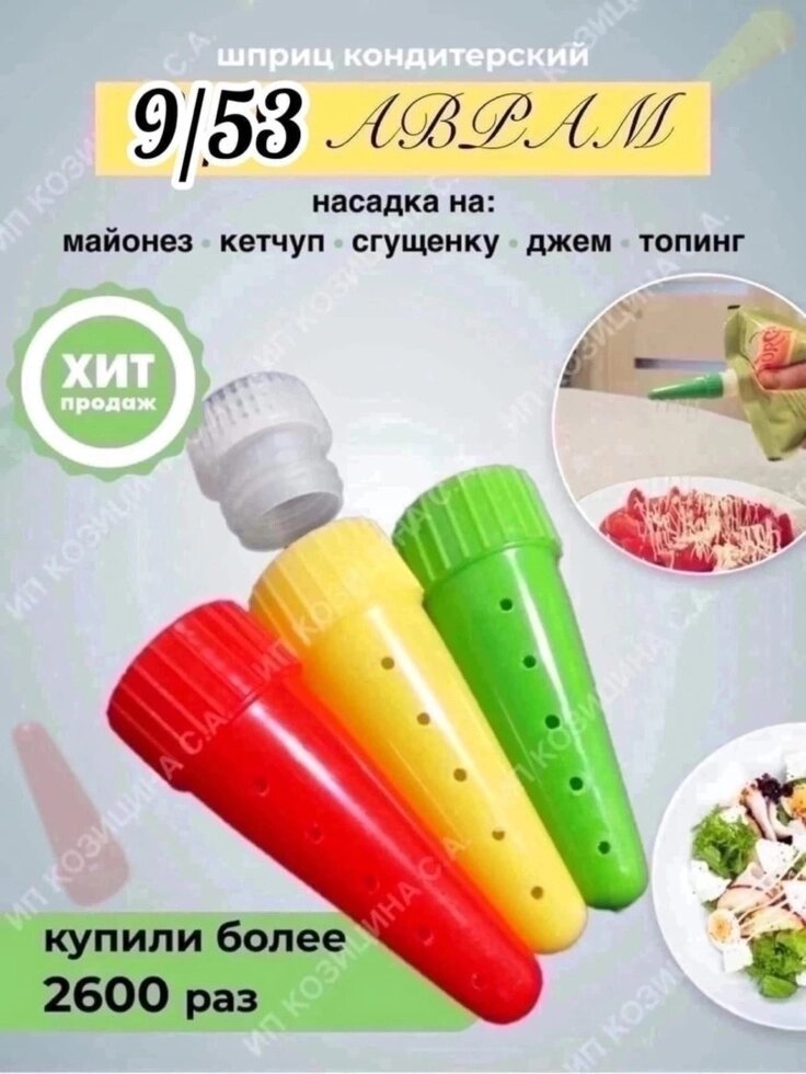 Набор насадки 3 шт на майонез/кетчуп/сгущёнку и другие + адаптер