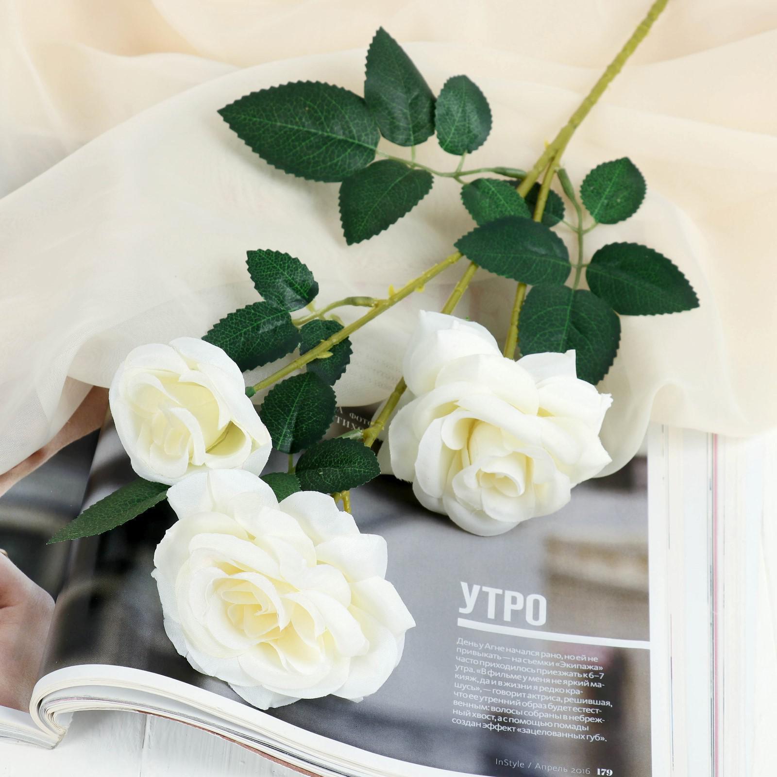 Цветы искусственные "Роза тройная" 6х61 см, белый