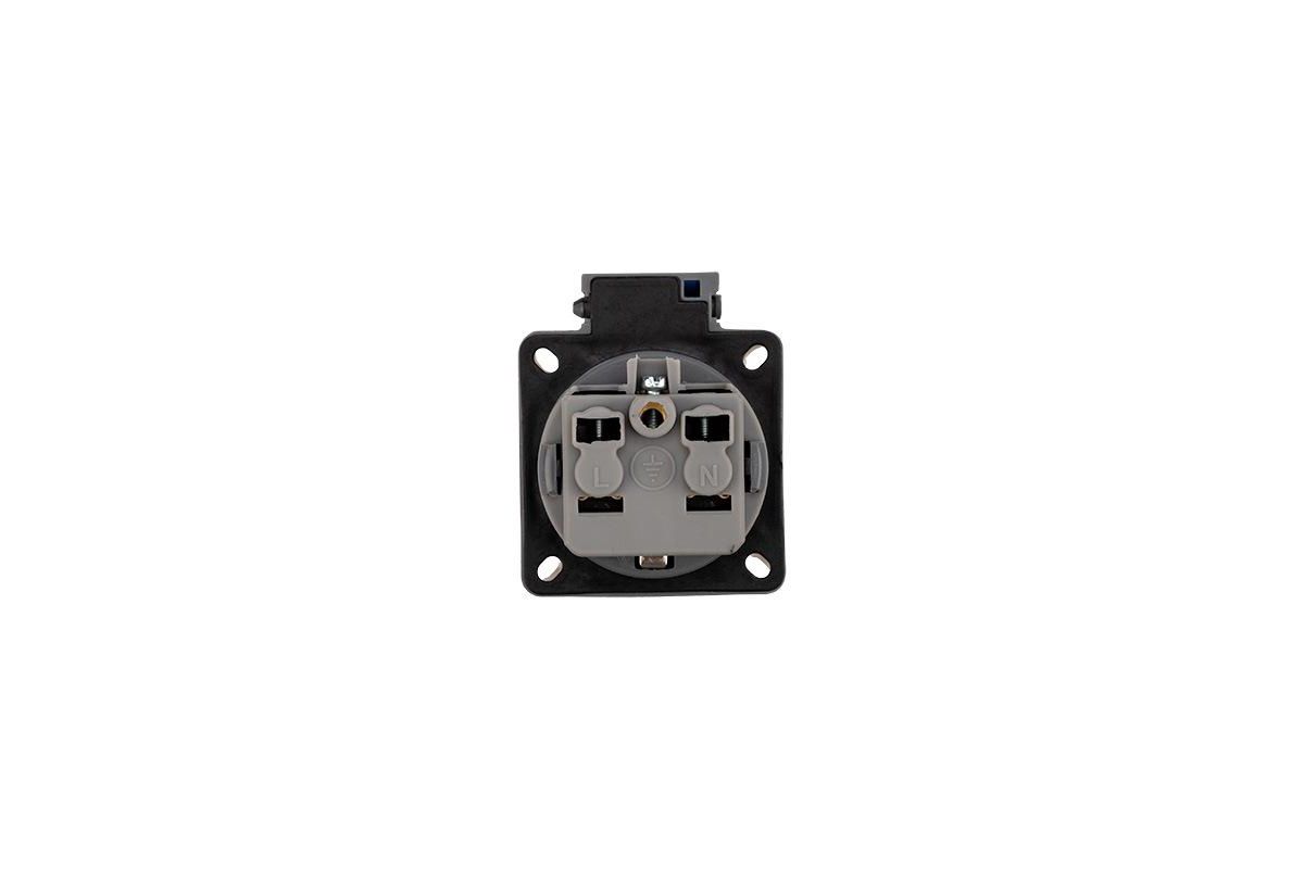 Розетка REXANT 111-008 влагозащищенная с крышкой, с/з, скрытая установка,16 А, IP54 каучук