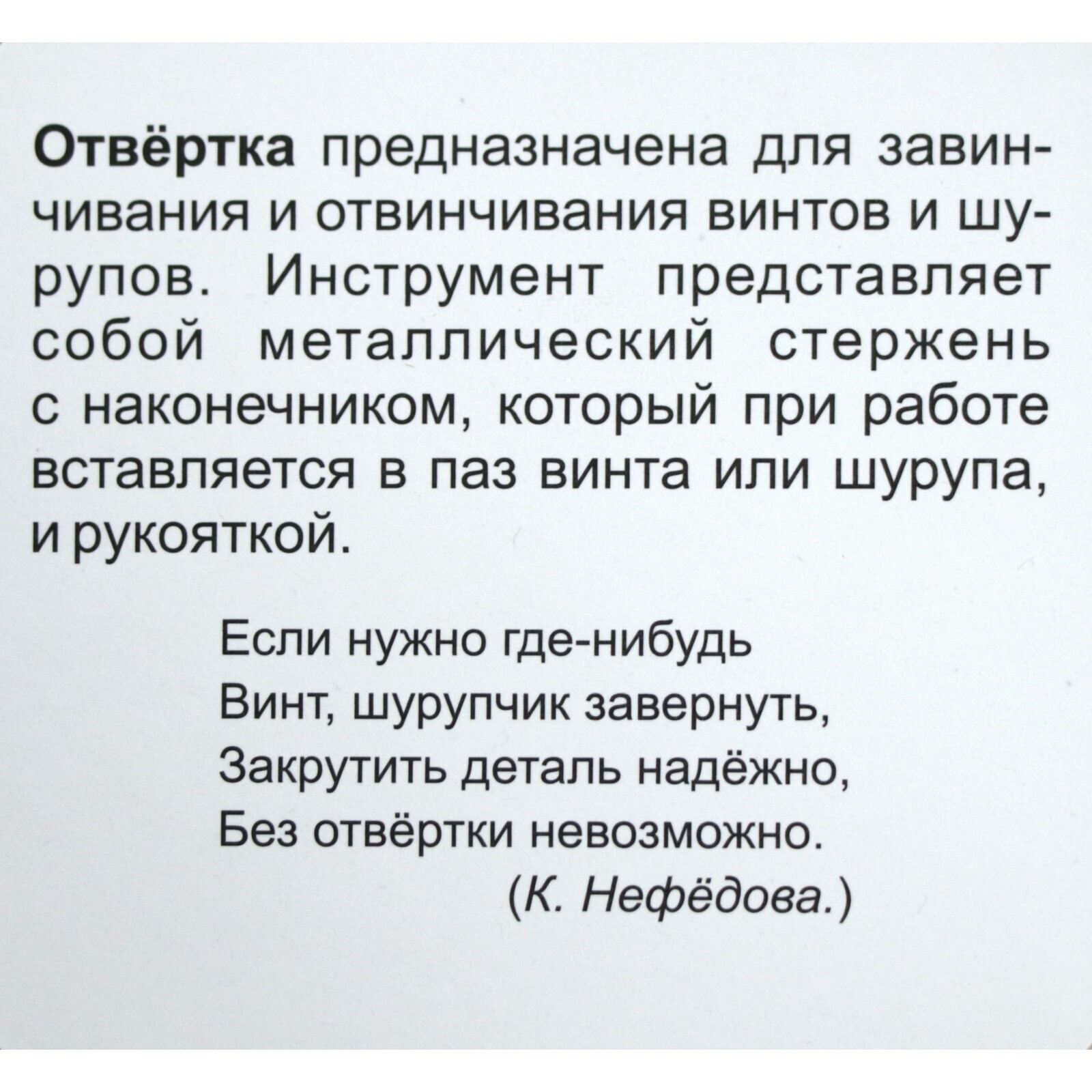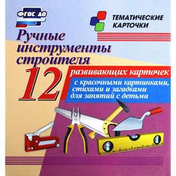 Ручные инструменты строителя: 12 развивающих карточек с красочными картинками, стихами и загадками для занятий с детьми
