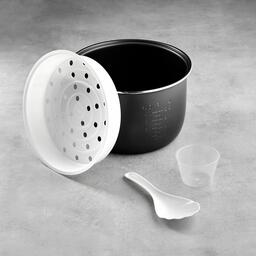 • В комплекте мерный стакан, форма для варки на пару, ложка