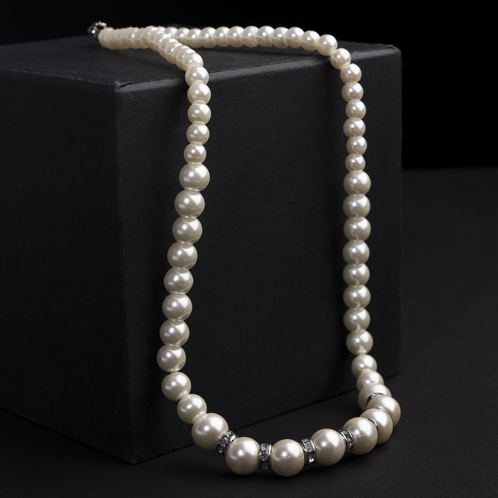 Бусы жемчуг "Невеста" бусины разного размера, со стразами d=0,5-1,5, цвет молочный, 45 см