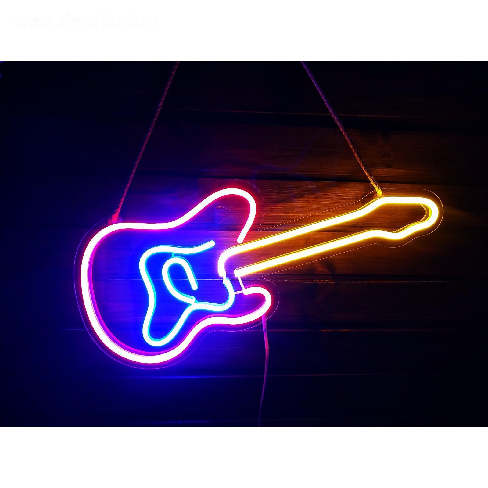 Неоновая вывеска «Гитара» 60.8 × 26.4 см, 12 В