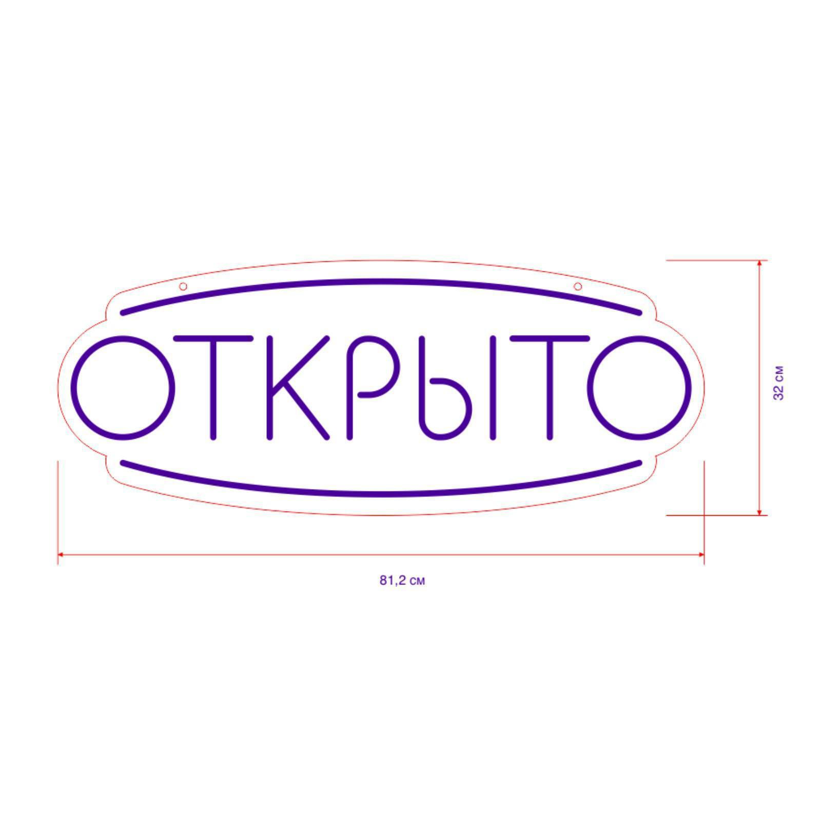 Неоновая вывеска «Открыто» 81.2 × 32 см, 12 В