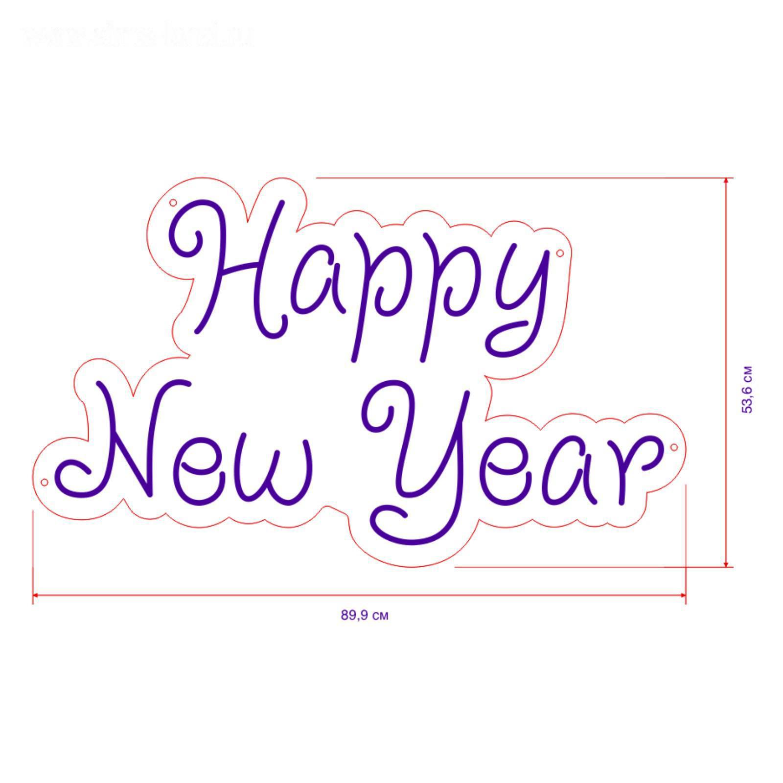 Неоновая вывеска Happy New Year 89.9 × 53.6 см, 12 В