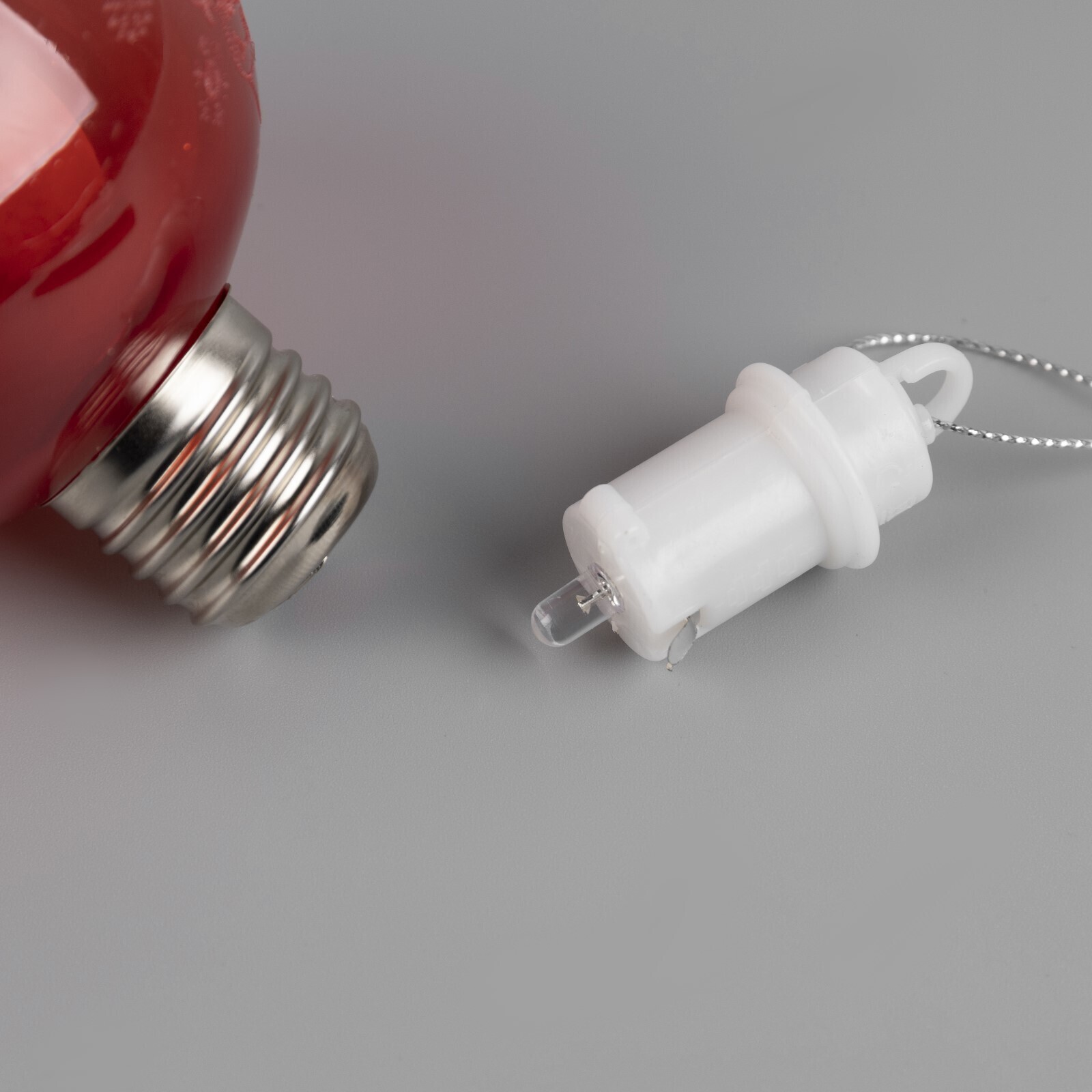 Ёлочный шар «Дед Мороз» красный, батарейки, 1 LED, свечение тёплое белое