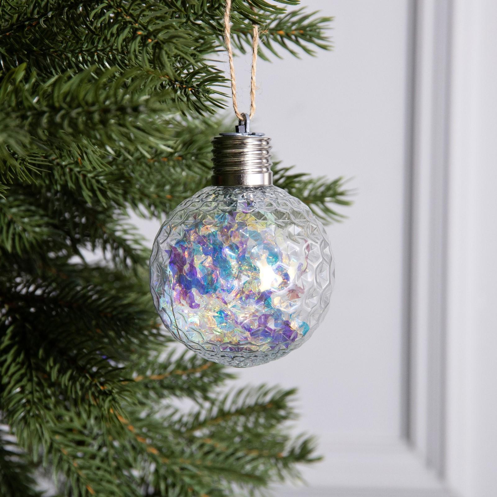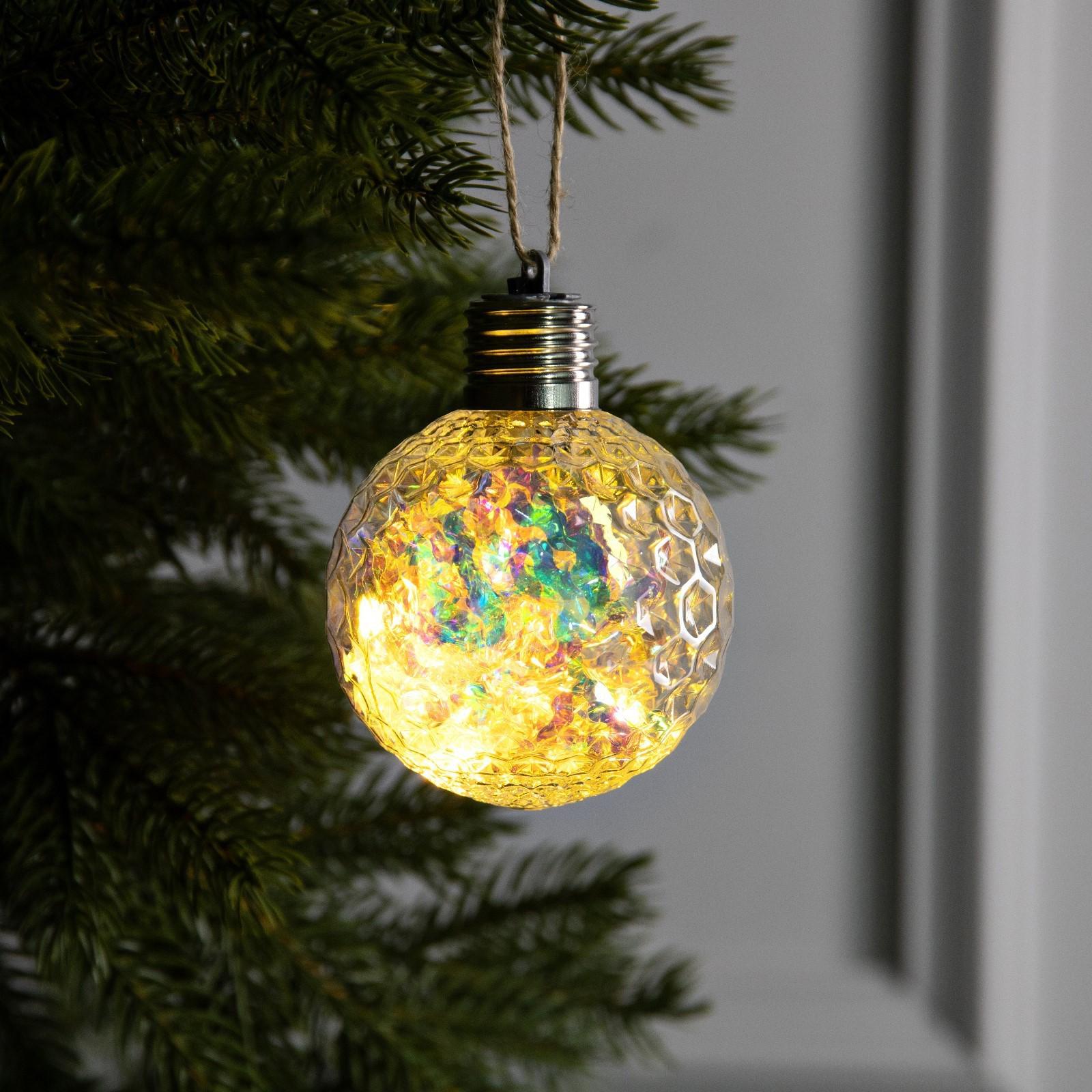 Ёлочный шар «Ретро», батарейки, 5 LED, свечение тёплое белое