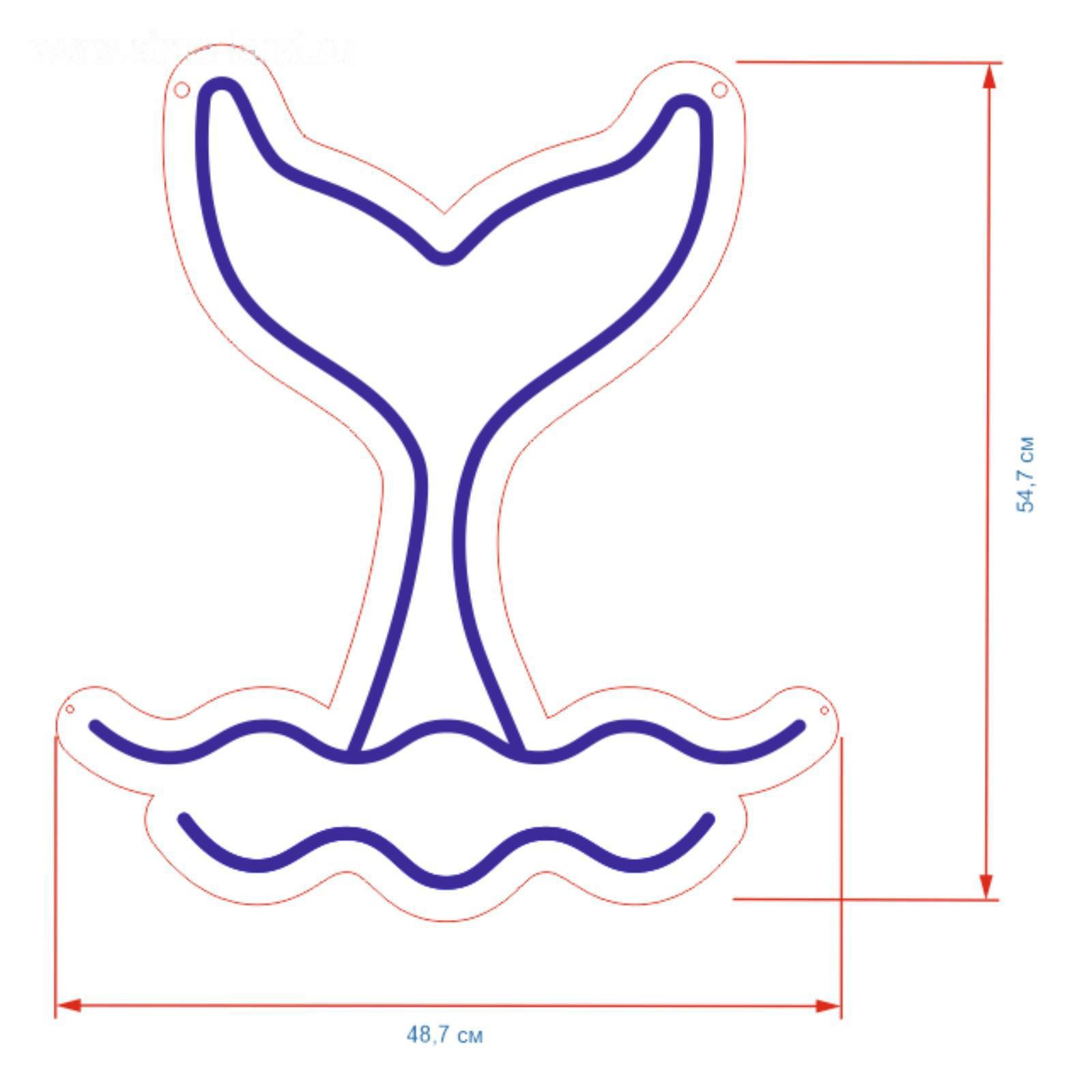 Неоновая вывеска «Хвост кита» 48.7 × 54.7 см, 12 В