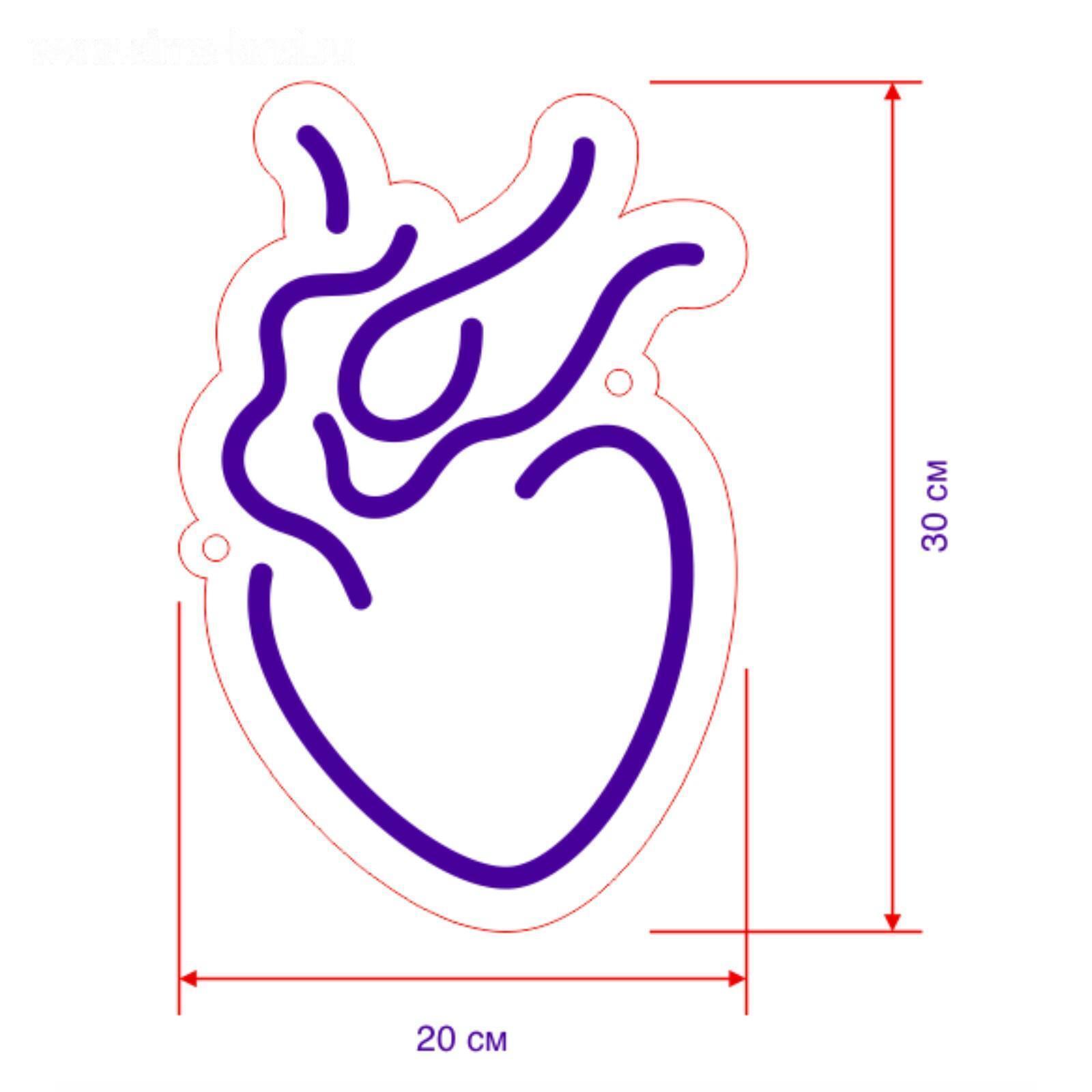 Неоновая вывеска «Анатомическое сердце» 20 × 30 см, 12 В
