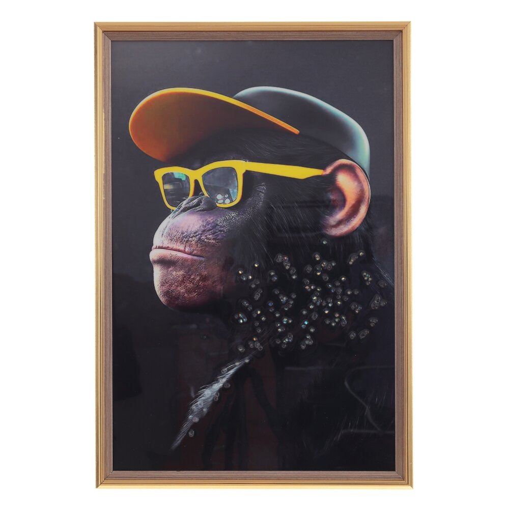 Панно с изображением обезьяны на темном фоне с кристальным декором. Изделие подчеркнет молодежный стиль помещения и украсит любой уголок в доме. Хорошая идея для подарка.