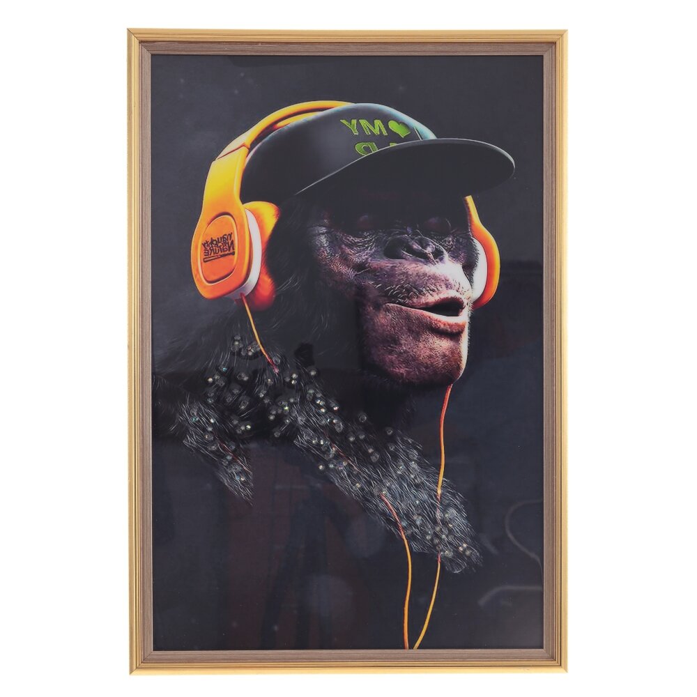 Панно с изображением обезьяны на темном фоне с кристальным декором. Изделие подчеркнет молодежный стиль помещения и украсит любой уголок в доме. Хорошая идея для подарка.