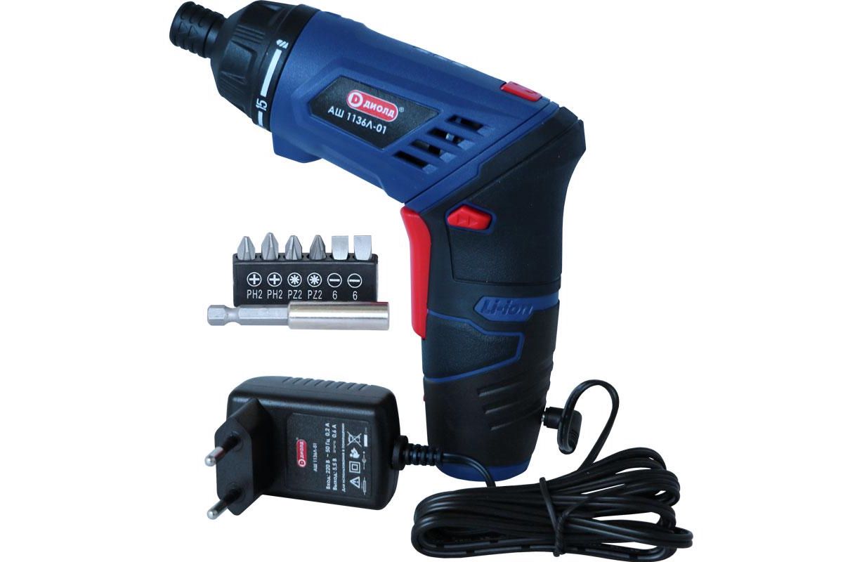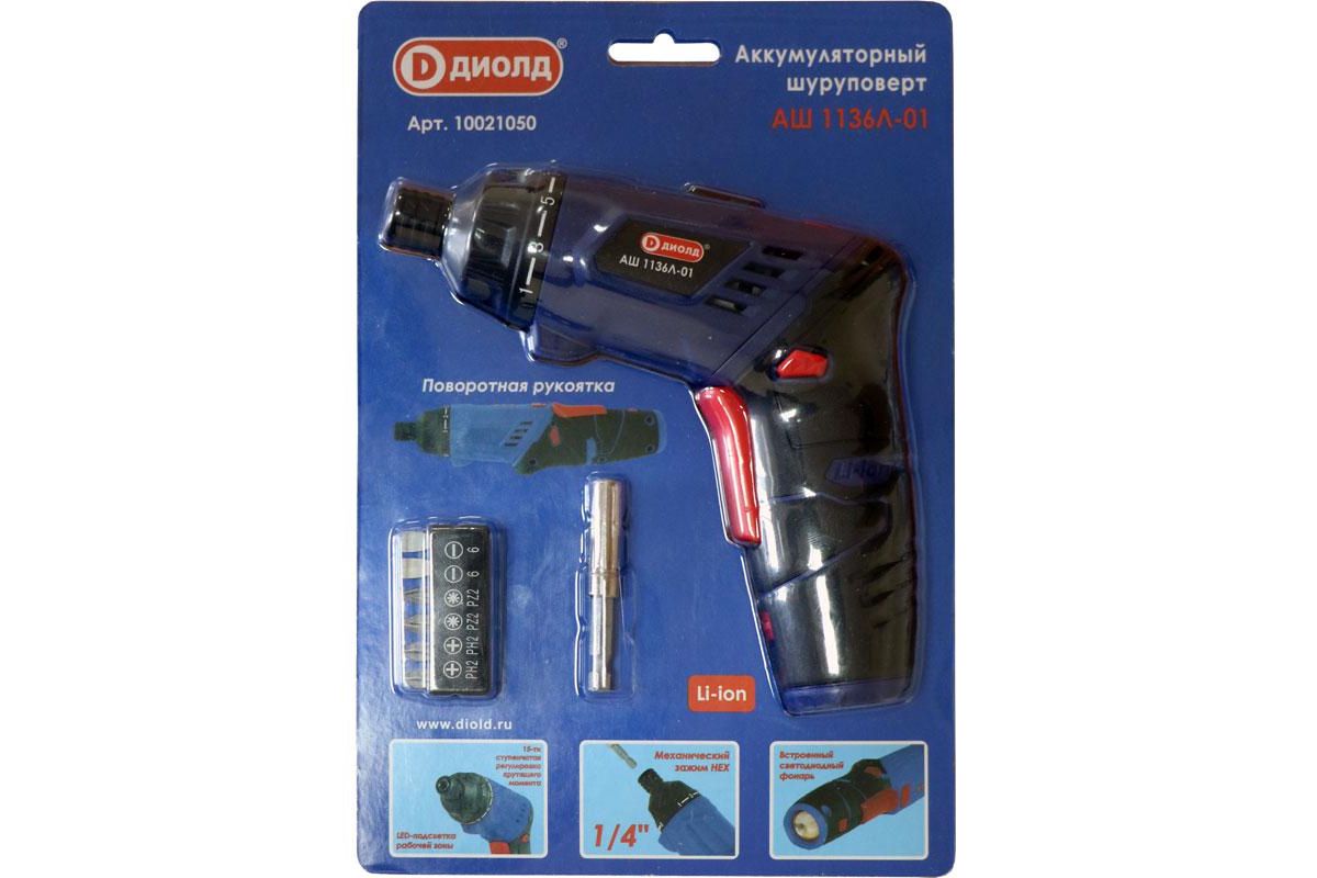 Отвертка аккумуляторная ДИОЛД АШ-1136 Л-01 3.6 В, 1.5 Ач, 210 об/мин, патрон 1/4'', макс д. 6
