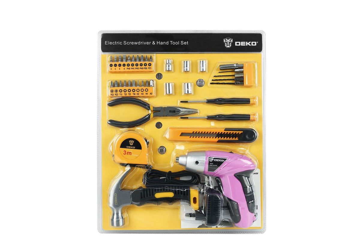 Аккумуляторная отвертка DEKO DKS4 и набор 36 Tools Kit идеально подходит для бытового использования. В комплект входит аккумуляторная отвертка DKS4, прецизионные отвертки, рулетка, канцелярский нож, безынерционный молоток и биты.