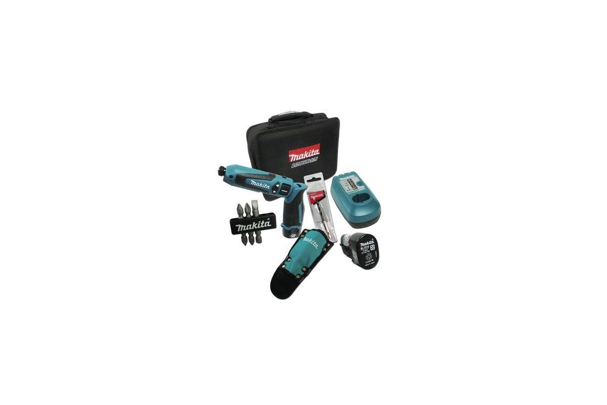 Аккумуляторная ударная отвертка MAKITA TD021DSE – инструмент с отличными рабочими характеристиками в компактном корпусе. С ее помощью можно выполнять работы по ударному и безударному закручиванию крепежных элементов, а также сверлить отверстия в различных материалах, таких как дерево и металл. Блокировка вала позволяет использовать инструмент в качестве ручной отвертки для ослабления или затягивания шурупов. В комплект поставки входит набор бит и коробка с хвостовиками.