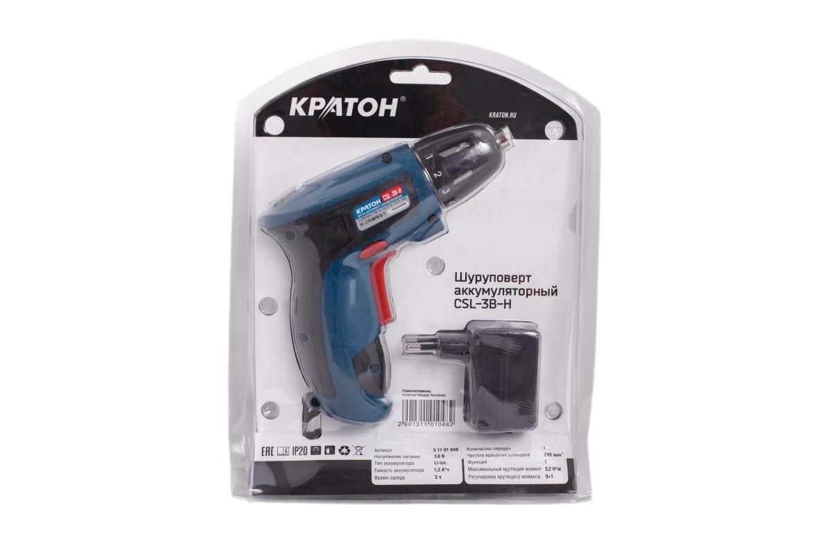 - Рукоятка с резиновым покрытием - для комфортной работы аккумуляторным шуруповертом Кратон CSL-3B-H 3 11 01 048.