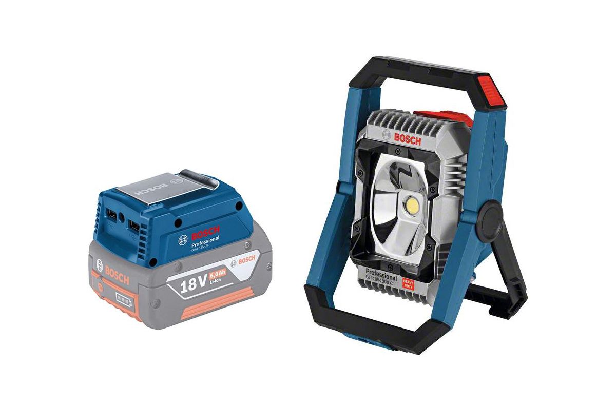 В состав набора входят: Фонарь BOSCH GLI 18V-1900 (0.601.446.400) 1900лм нет АКБ и ЗУ, Адаптер BOSCH GAA 18V-24 USBx2 (2x2.4A или 2 x 1.2A) Порт для куртки с подогревом