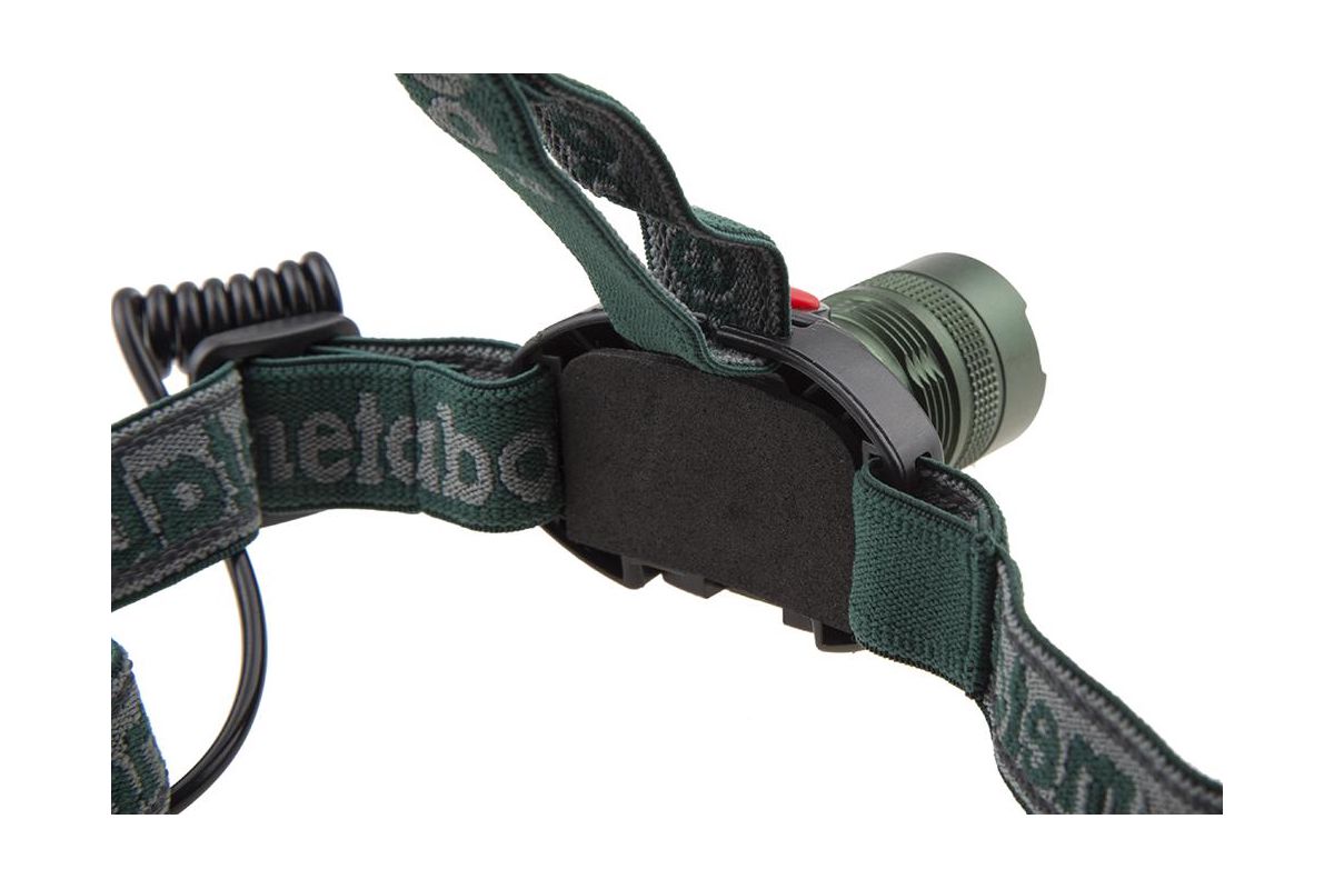 - Корпус налобного светодиодного фонарика Metabo 657003000 выполнен из прочного материала;
